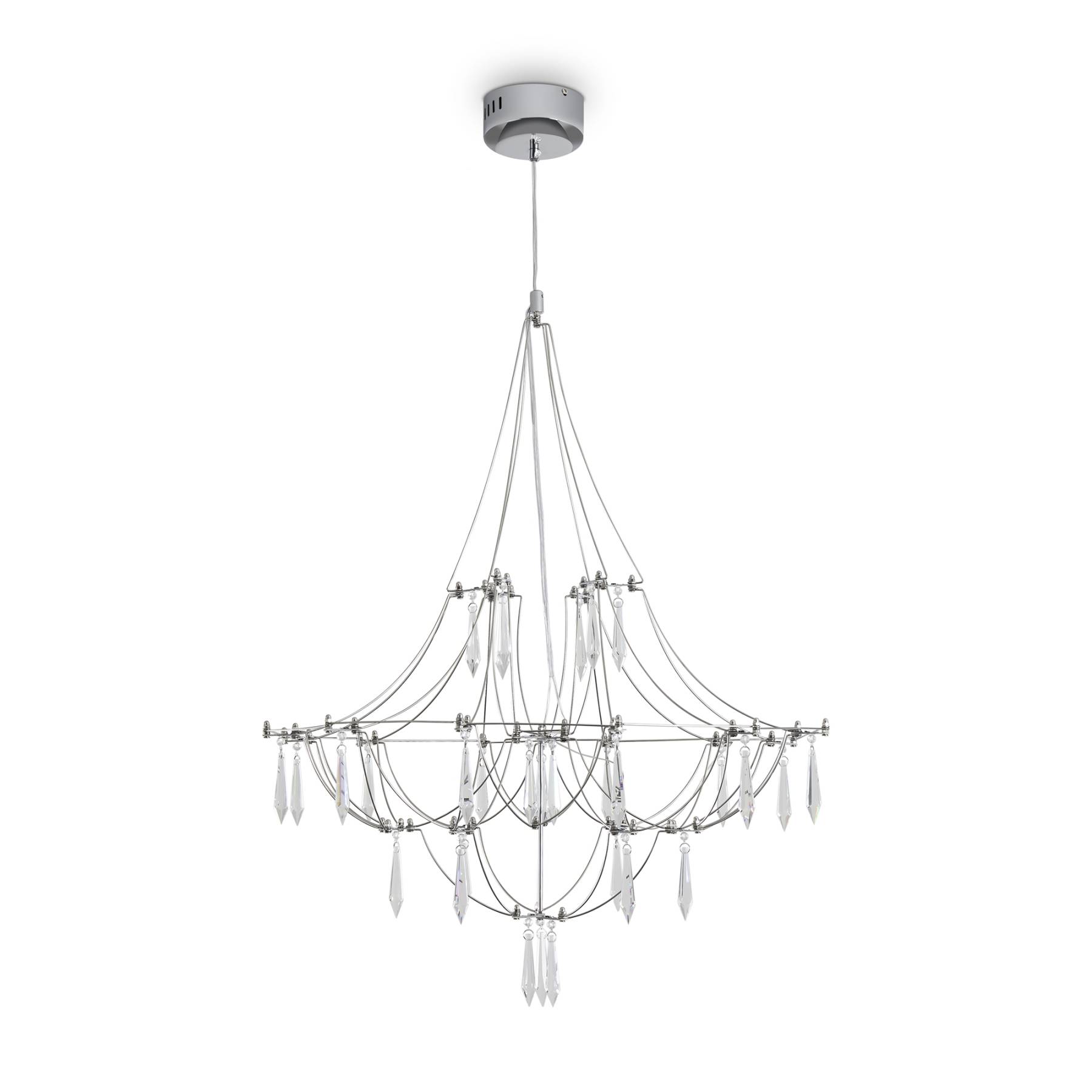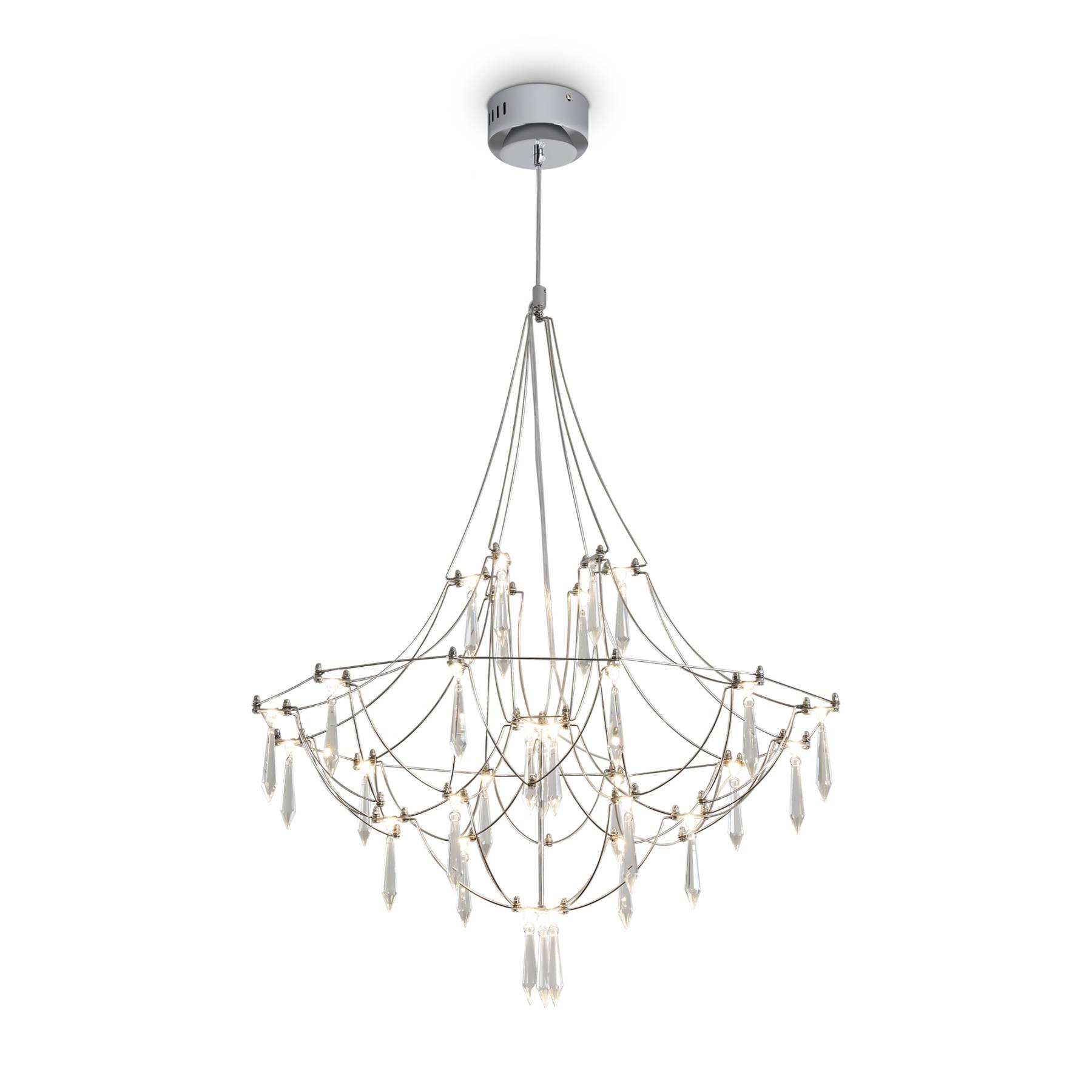 Арматура - хромированная нержавеющая сталь. В соединениях арматуры Led источник света и декоративные элементы из хрусталя в виде капелек. Цветовая температура 3000К.