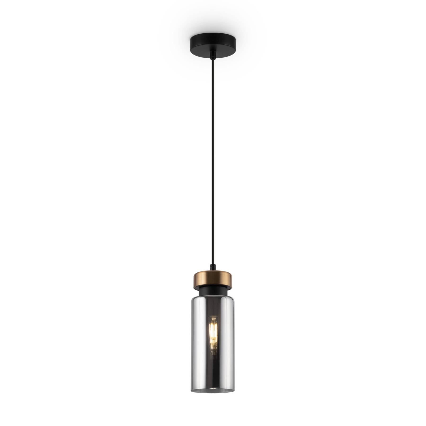 Металлическая арматура в двух оттенках: никель и черный с золотом. Плафон – глянцевое стекло. Цвет – серый. Оригинальная вытянутая цилиндрическая форма для акцентной подсветки. Источник света – лампа с цоколем E14.