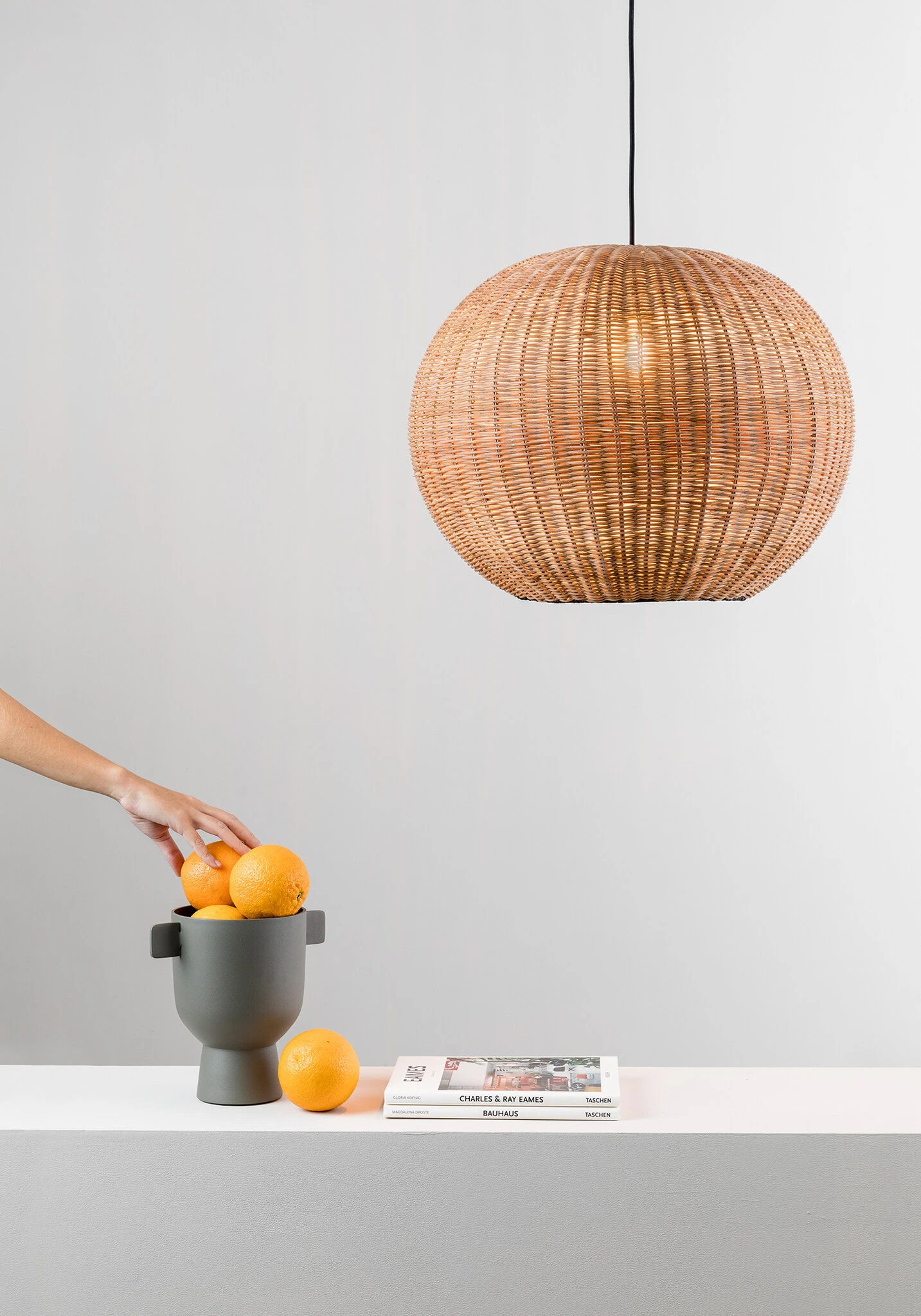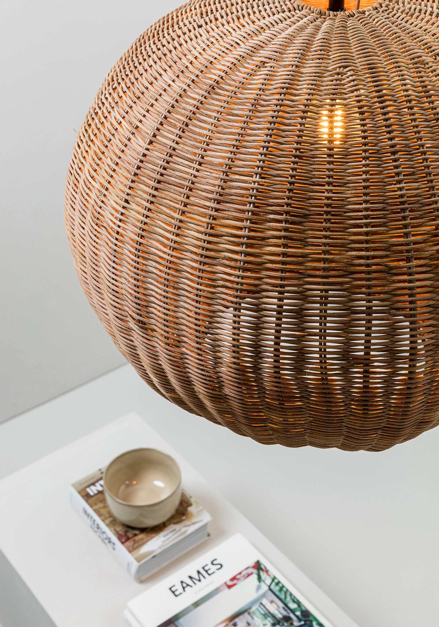 HAKA — круглый подвесной светильник в средиземноморском стиле. Свет проецируется через ротанг абажура, неожиданно красивый эффект. Он предназначен для освещения спален и гостей и является хорошим выбором для отелей. Версия с абажуром 530 мм.