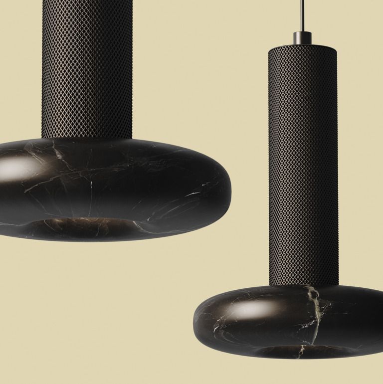 Подвесной светильник HULO. 1 x GU10 5 Вт 2700 К (лампа входит в комплект). Корпус из текстурированной трубы / мраморная головка.