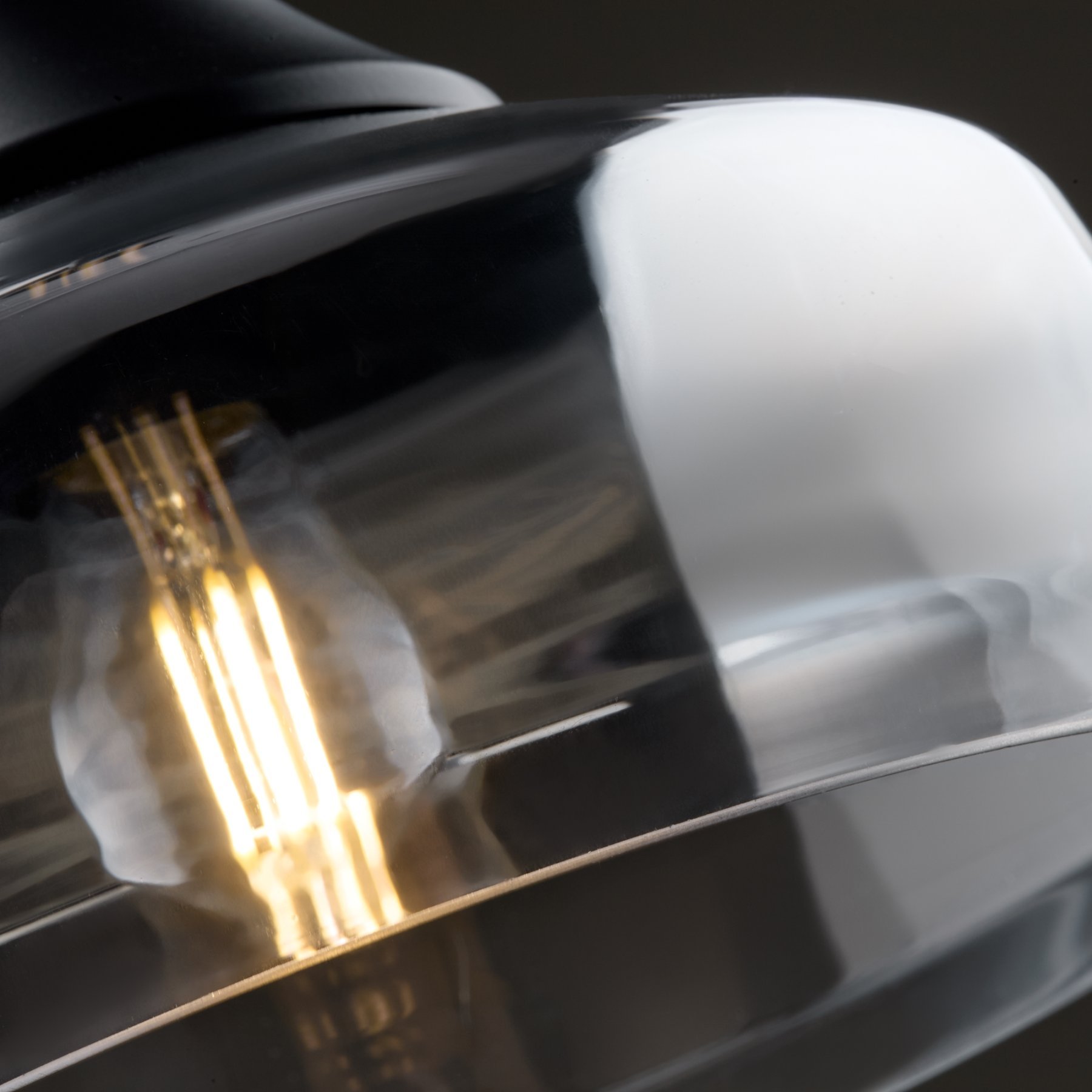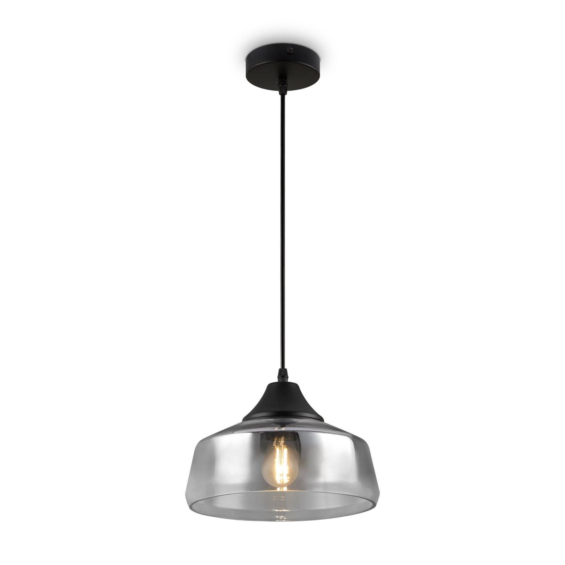 Металлическая арматура в черном цвете. Стеклянный плафон с мягким градиентным переходом оттенков. Цветовые решения – серый, янтарный. Трендовая обтекаемая форма. Источник света – лампа с цоколем E27.