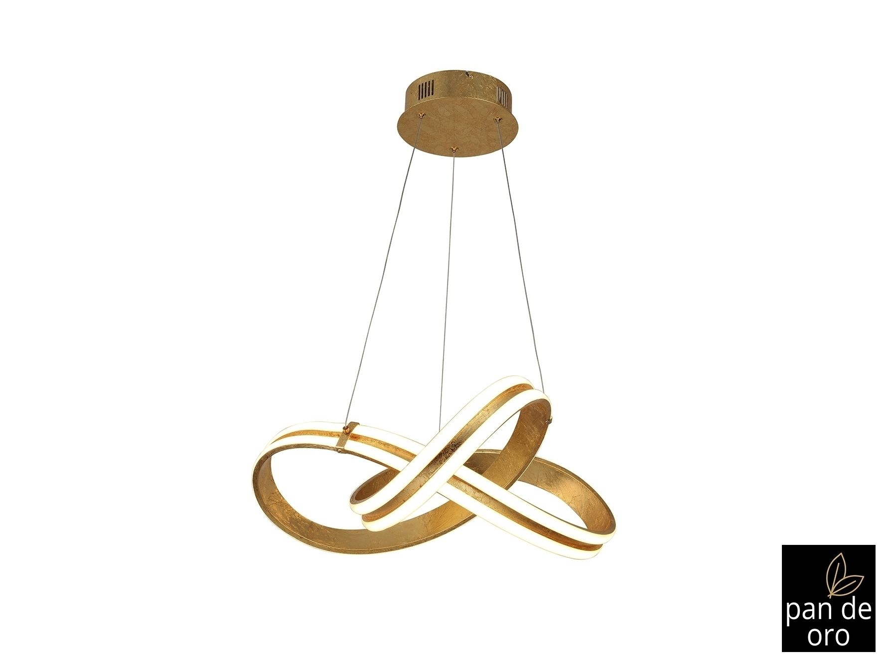Подвесной светильник из стали и алюминия с покрытием из золотой фольги. Акриловый рассеиватель опалового цвета. 56W LED, 2700 Lm, 3000 K.
