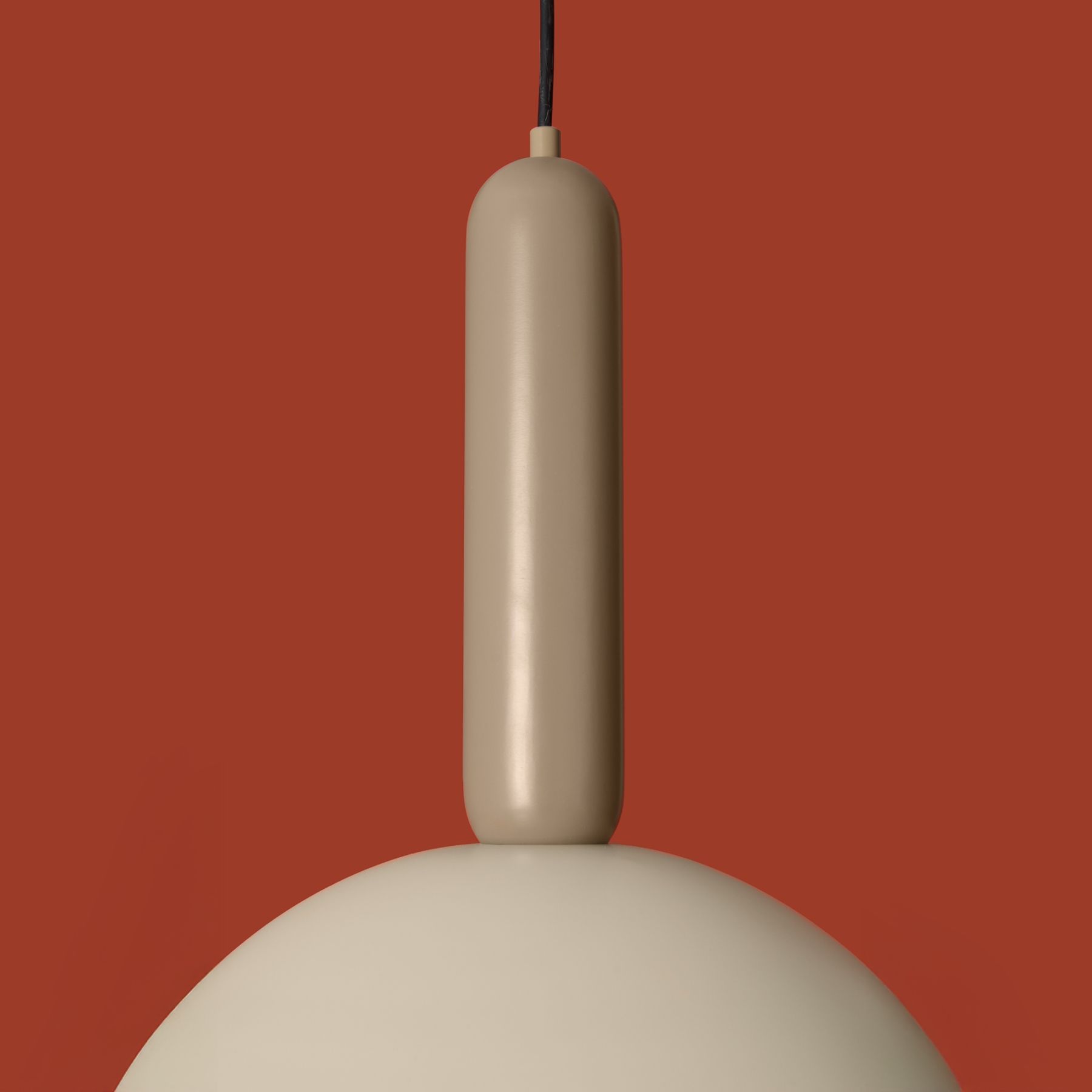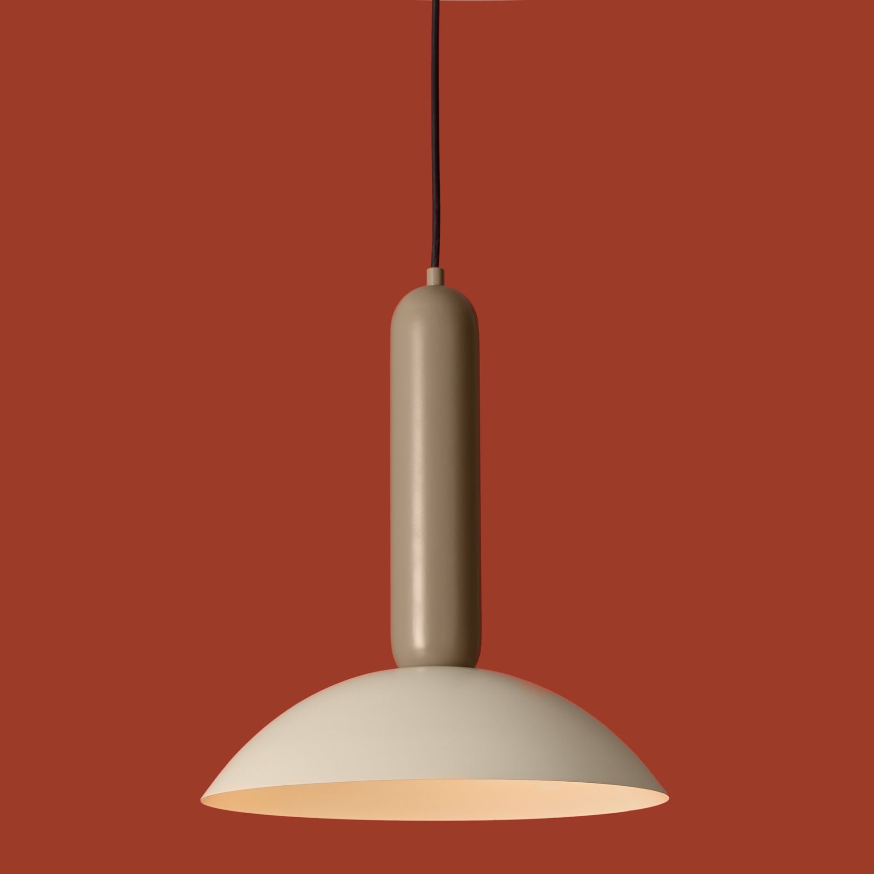Материал арматуры — металл, цвет — черный. Каждый подвеской светильник окрашен в 2 цвета: серо-бежевый (RAL 1019 ) и жемчужно-белый (RAL 1013), Каменно-серый (7030) и Белый (9010), Белый (9010) и Каменно-серый (7030). Необычный плафон-купол небольшой высоты дополнен подвесом цилиндрической формы. Подходит для современных интерьеров: лофт, джапанди и минимализм. Номер Ral носит рекомендательный характер.