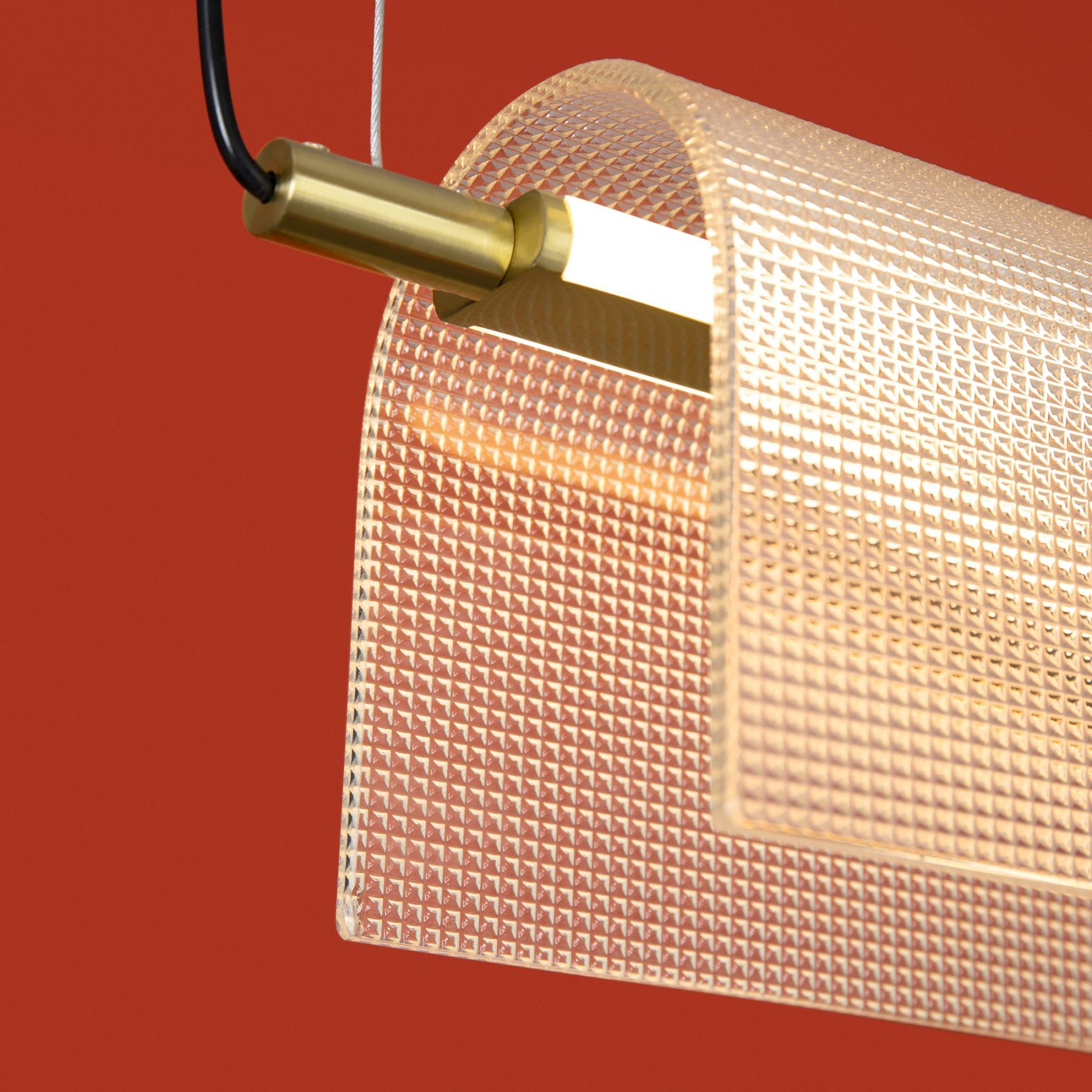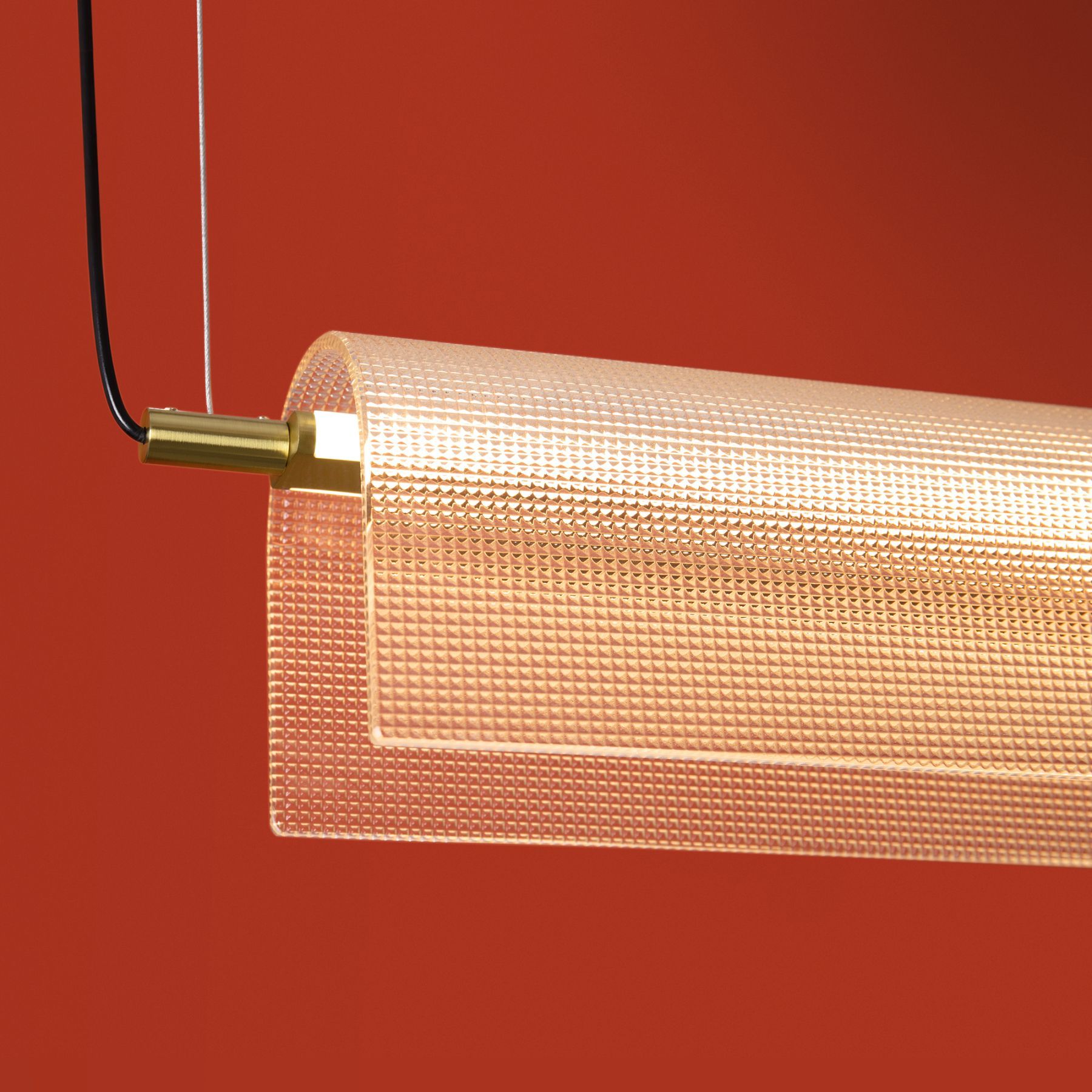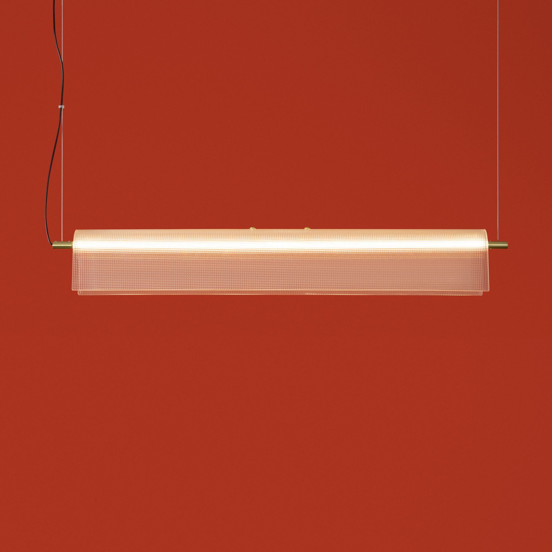 Материал арматуры — металл, цвет — черный с латунными элементами. Подвесной светильник оснащен LED-источником света с цветовой температурой 2700К. Подвесной светильник с прозрачным стеклянным рельефным плафоном в двух размерах. LED-трубка может быть использована отдельно от абажура . Подходит для современных интерьеров.