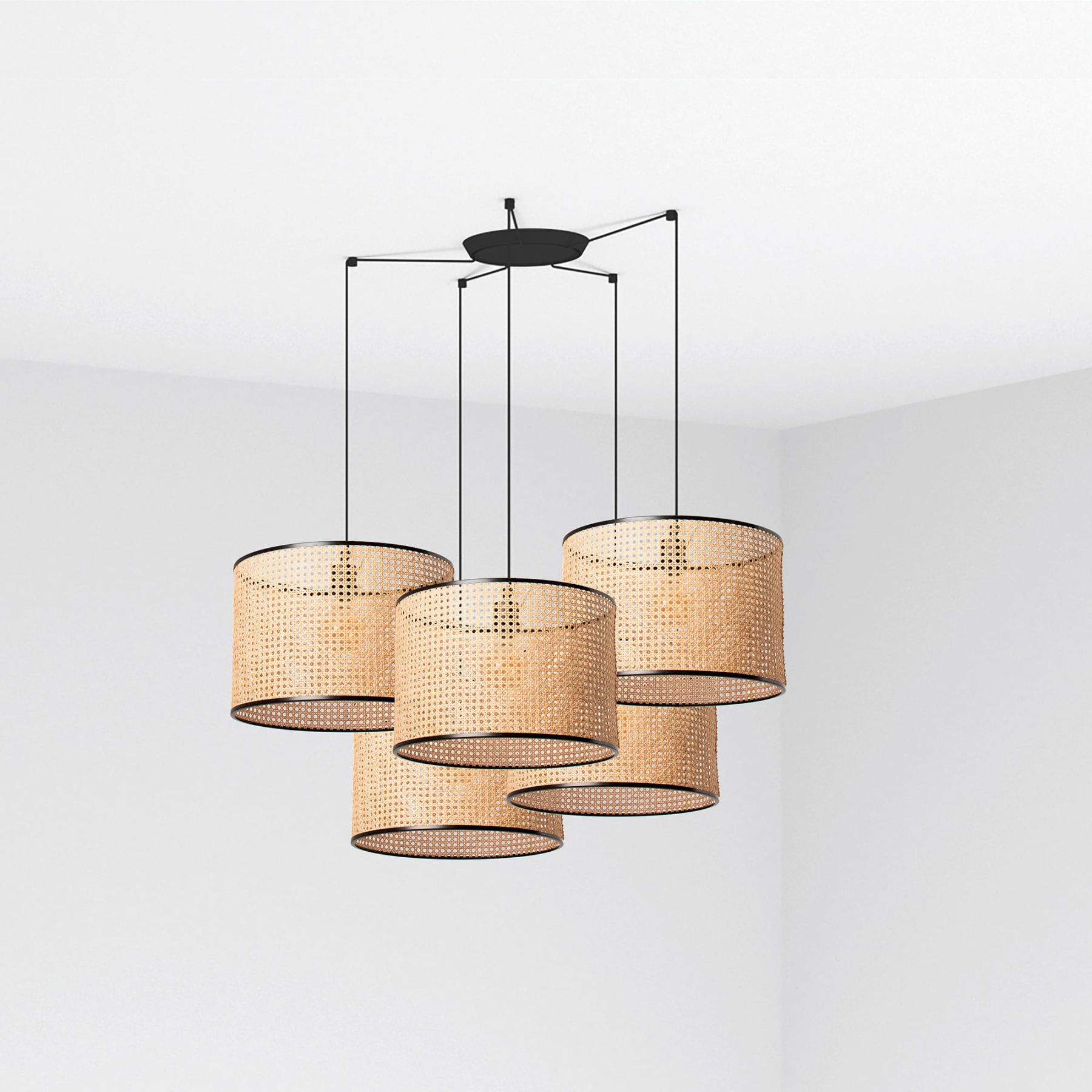 Версия с многократным 5-световым фонарем. MAMBO — это коллекция ламп для внутреннего освещения, разработанная Faro Lab. Этот черный настенный светильник с абажуром из ротанга предназначен для освещения спален и гостей. Кабель имеет талреп, что позволяет использовать светильник в смещенных точках. Это хороший выбор для отелей. Абажур версии 450 мм.