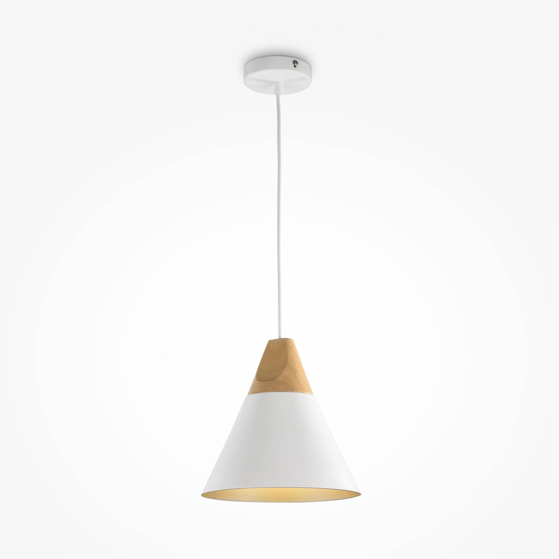 Арматура и плафон из металла в двух оттенках: белый и серый. Декоративный элемент из бука. Дерево покрыто бесцветным лаком. Актуальная скандинавская эстетика. Регулируемая высота. Источник света - лапма с цоколем Е27.