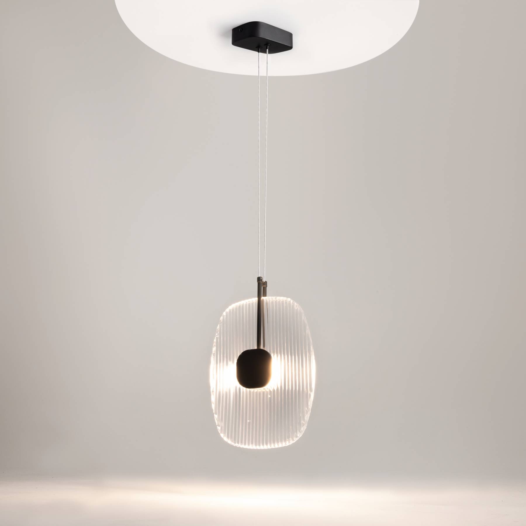 Ещё с древних времен образ солнечного затмения вдохновлял и завораживал исследователей. В серии дизайнер удачно обыграл природу астрономического явления: LED-источники закрыты декоративными элементами. Свет мягко рассеивается с двух сторон, подчеркивая фактуру литого стеклянного элемента. Орнамент в виде объемных закругленных линий напоминает о трендовых рейках, актуальной отделке стен и мебели. В составе серии – светильник с двумя подвесами, настольная лампа и торшер с устойчивым основанием. Высота и положение проводов регулируется, что позволяет создавать индивидуальные композиции. Металлическая арматура окрашена в матовый черный цвет. Серия легко интегрируется в современное пространство в стиле фьюжн, сканди, контемпорари.