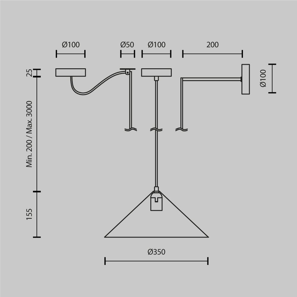 Материал арматуры - металл. Цвета - черный, белый, а также два актуальных оттенка серого. Универсальные и базовые формы плафонов. В комплекте: крюк, дополнительное основание и металлический элемент, которые позволяют закрепить подвес в нужной зоне или использовать его в качестве бра. Цоколь Е27. Лампы не входят в комлпект.