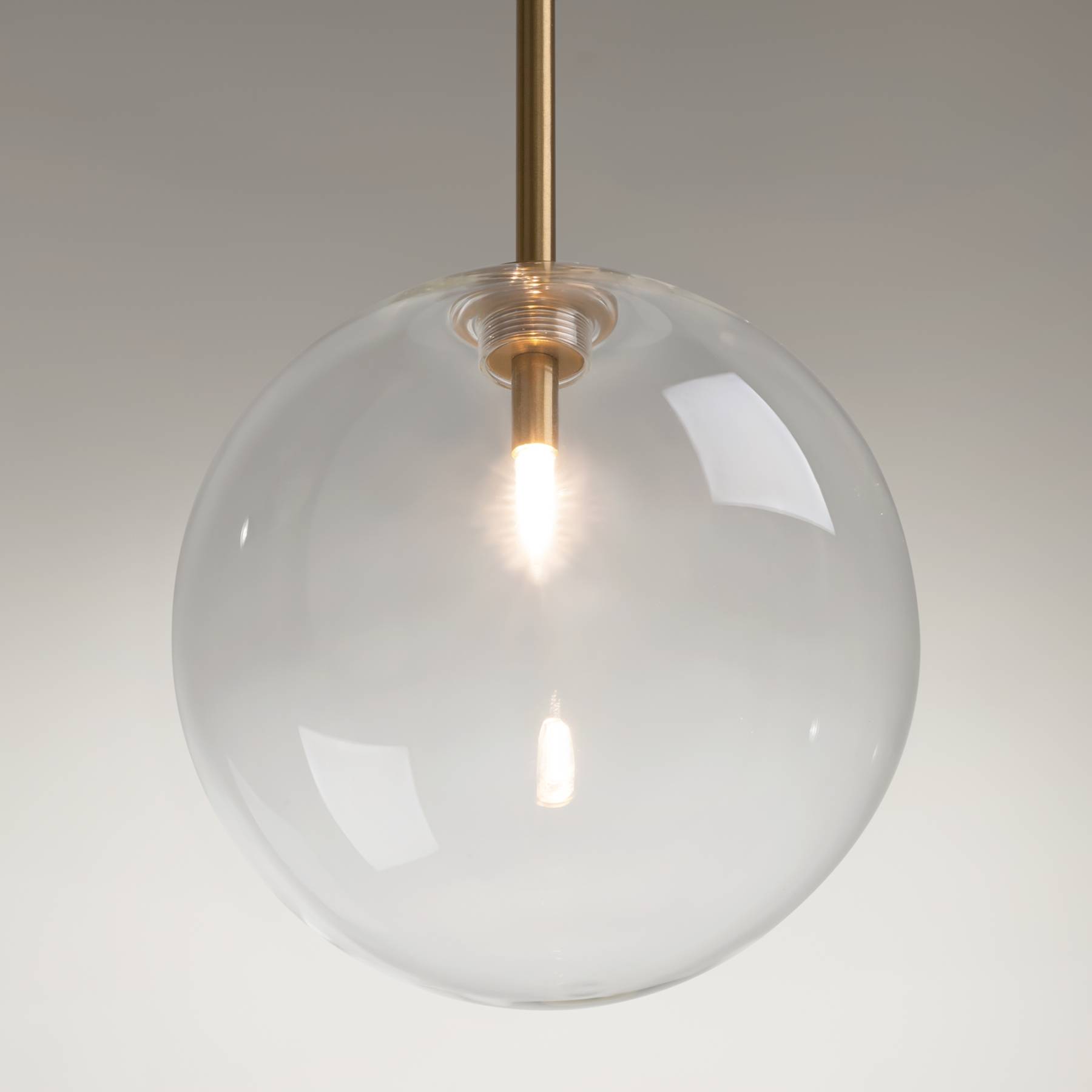 Материал арматуры - металл. Цвет - латунь, черный. Изящные линии арматуры, прозрачные плафоны из стекла в виде шара с миниатюрными лампами создают эффект воздушности светильников. Регулируемая высота подвесных светильников. Цоколь G4.