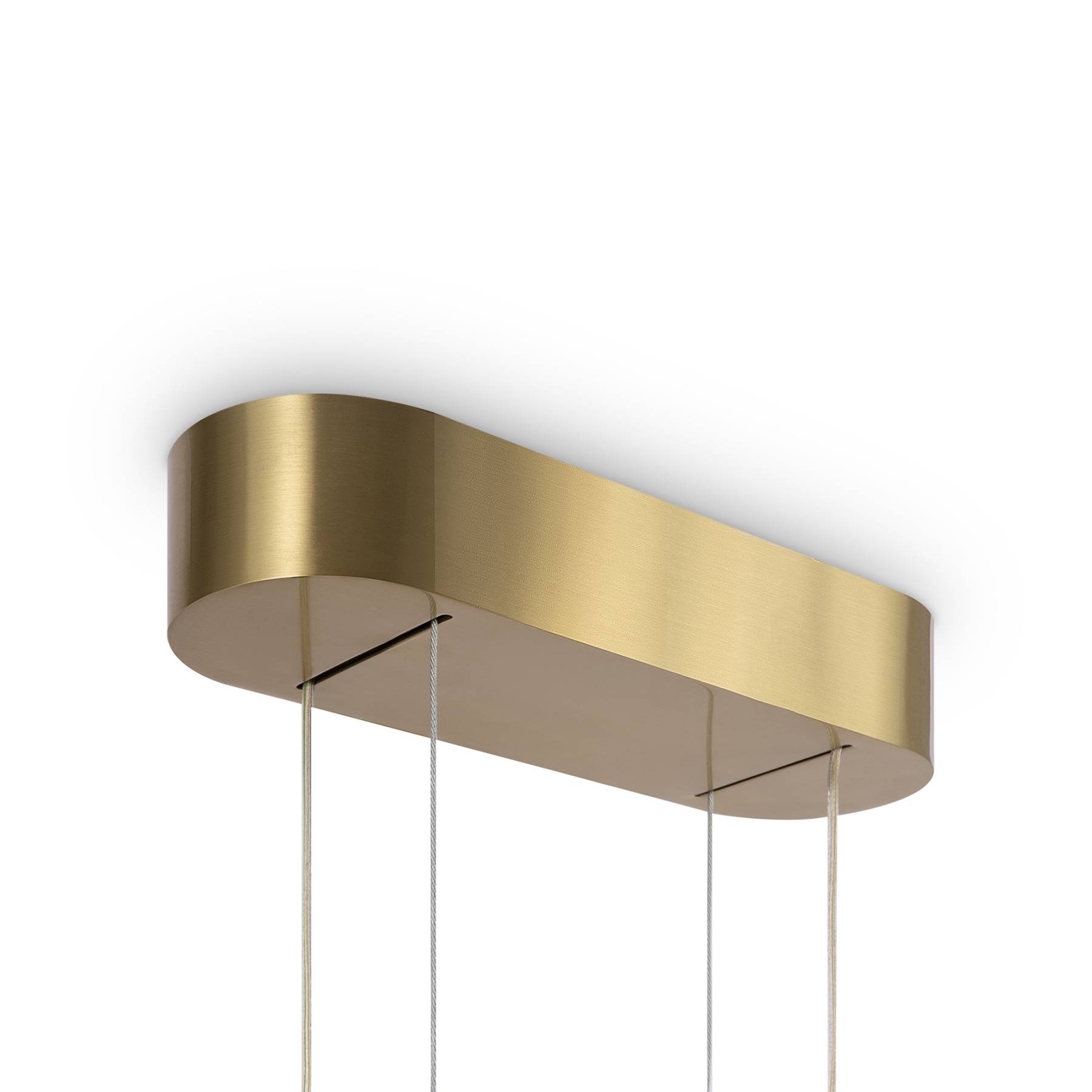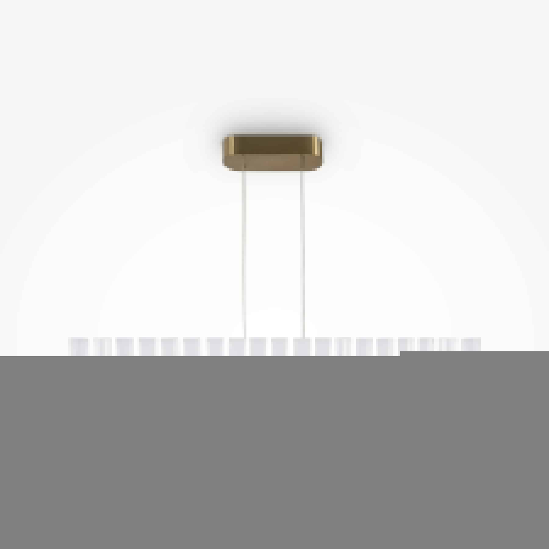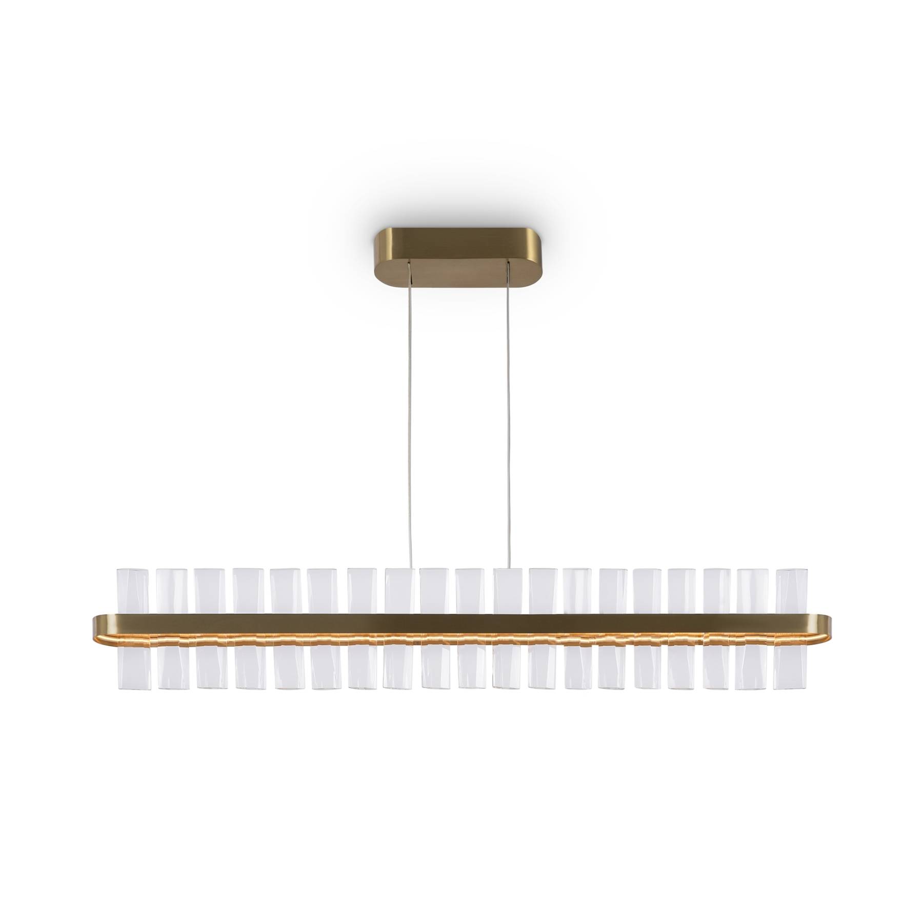 Материал арматуры - металл, цвет - латунь. Декор - объемные прозрачные хрустальные элементы с чередующимся рисунком. LED источник света, цветовая температура - 3000К. Регулируемая длина тросов.
