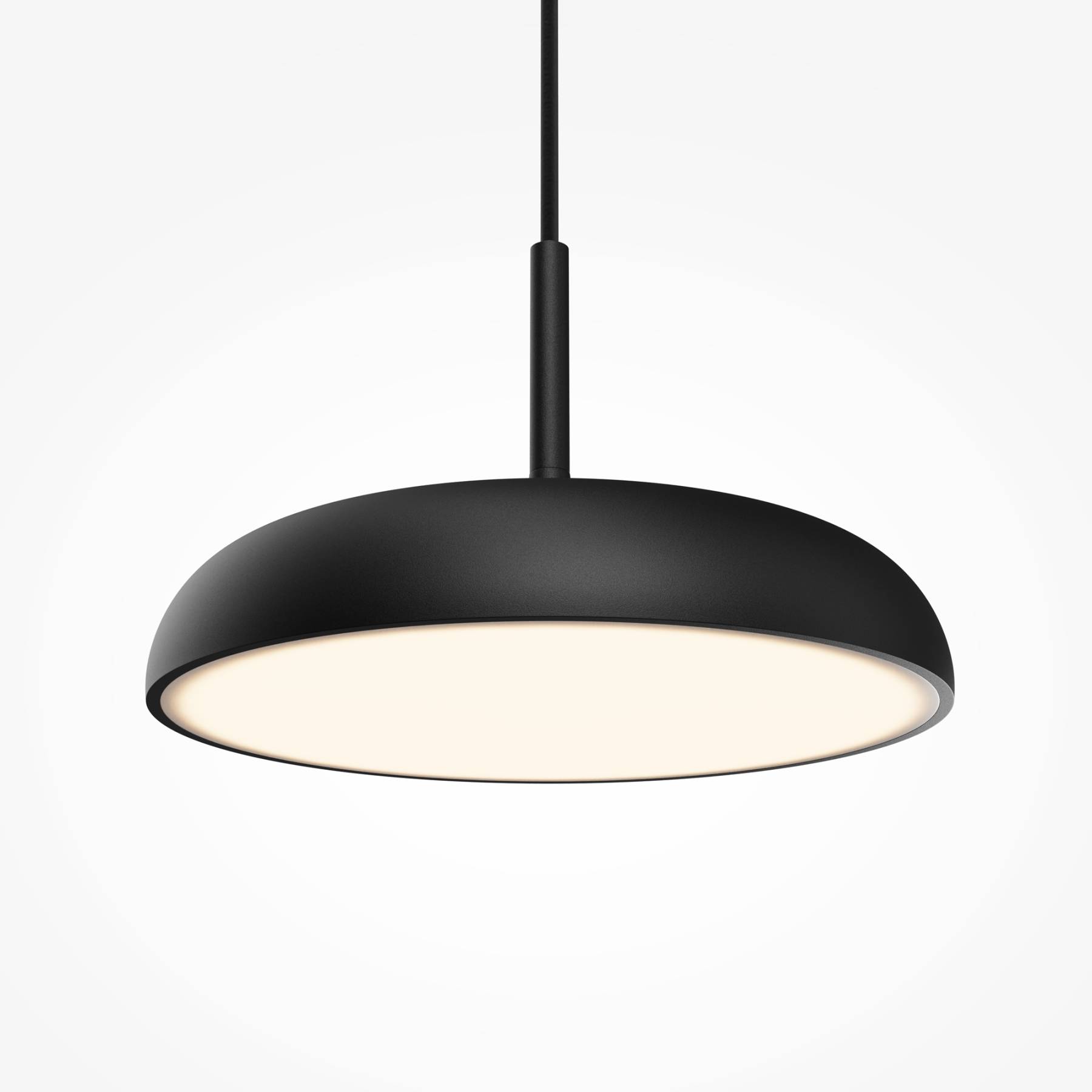 Арматура и плафон из металла,цвета - черный, белый, серый. Шагреневая поверхность - предотвращает следы от рук и пыли. Белый матовый рассеиватель из акрила хорошо пропускает свет, предотвращает слепящий эффект. Регулируемая длина провода - до 3 метров. LED-источник света. Цветовая температура 3000К.
