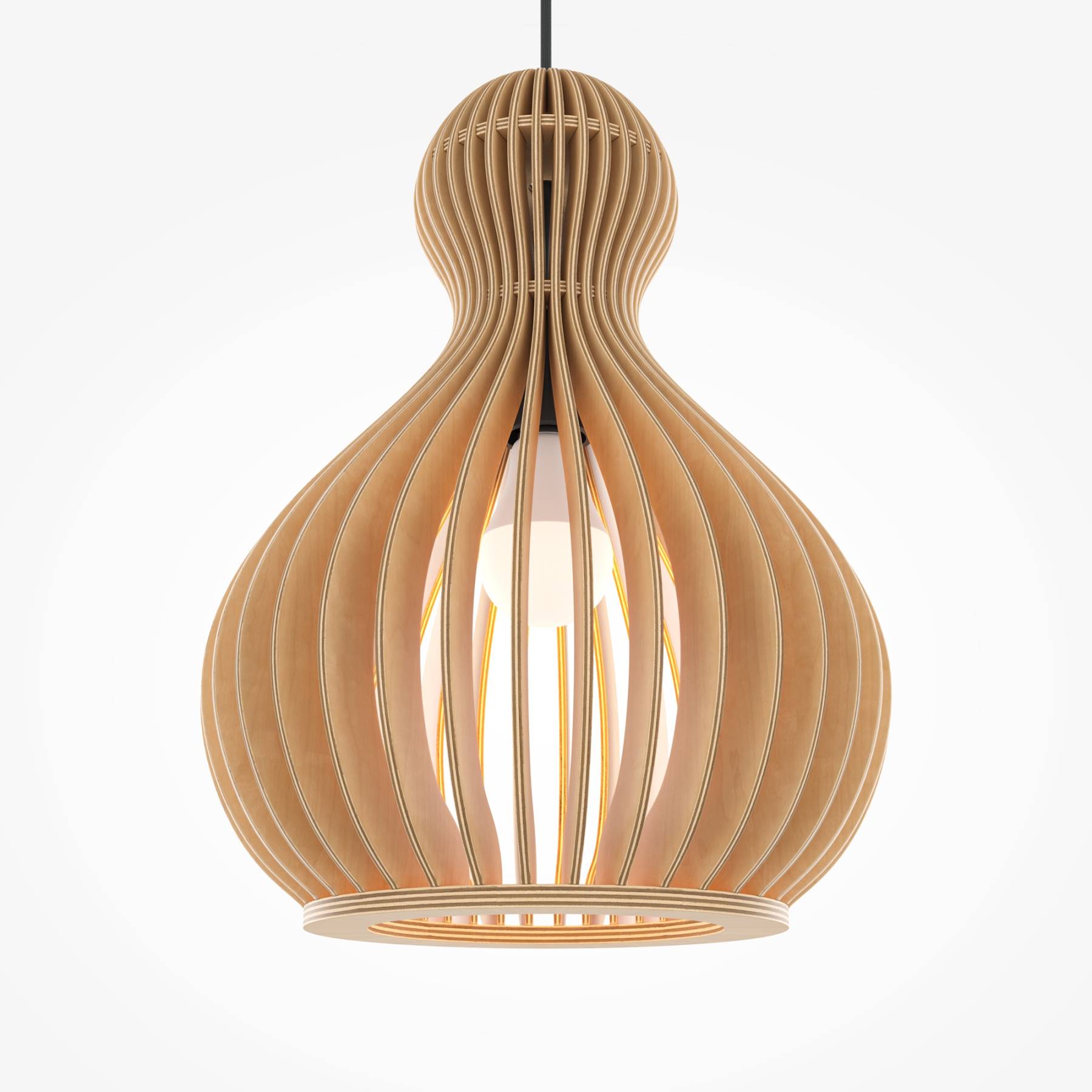 Материал арматуры – металл, цвет – черный. Абажур – 5-ти слойная фанера бежевого оттенка, покрытая специальным ла- ком. Тканевый черный провод. Регулируемая высота. Простые лаконичные форма, природные материалы. Цоколь E27.