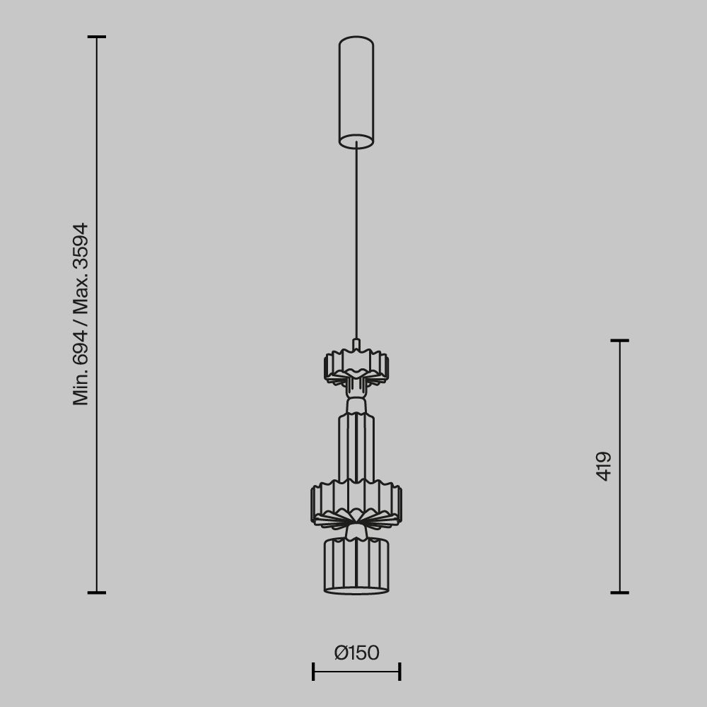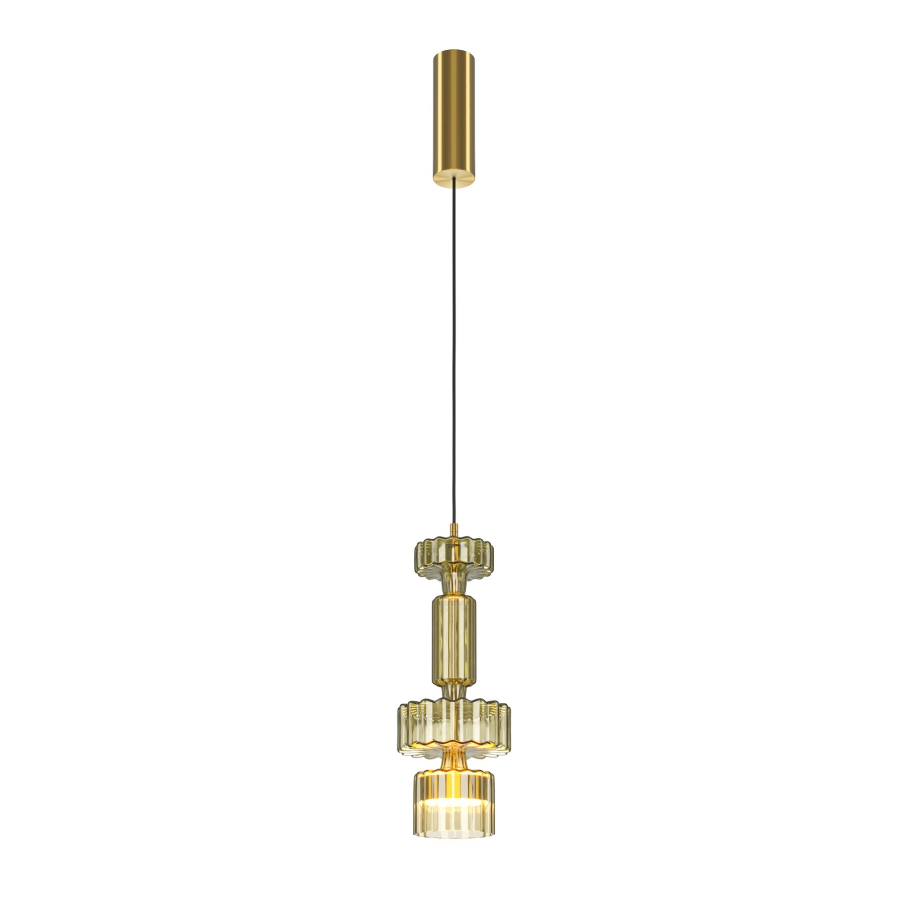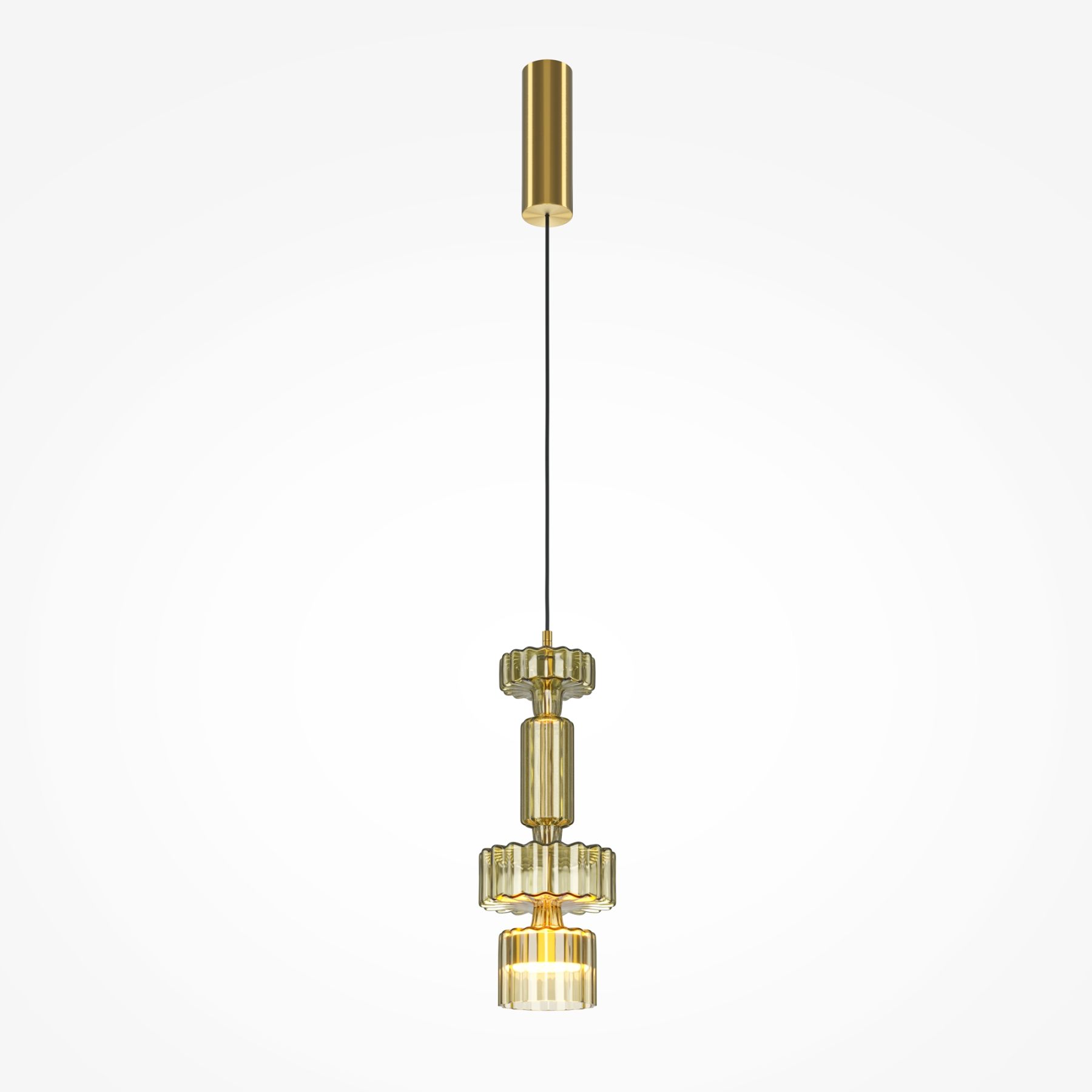Арматура в цвете латуни. Плафоны и декоративные элементы стеклянные, цвет коньячный. Источник света: LED-светодиод. Цветовая температура — 3000К, угол рассеивания — 120 градусов. Регулируемый по длине провод 3 метра — для использования в помещениях с высокими потолками. 3 варианта дизайна плафонов для составления композиций из одинарных светильников. Магнитные потолочные чаши без креплений сбоку и  держателя провода.