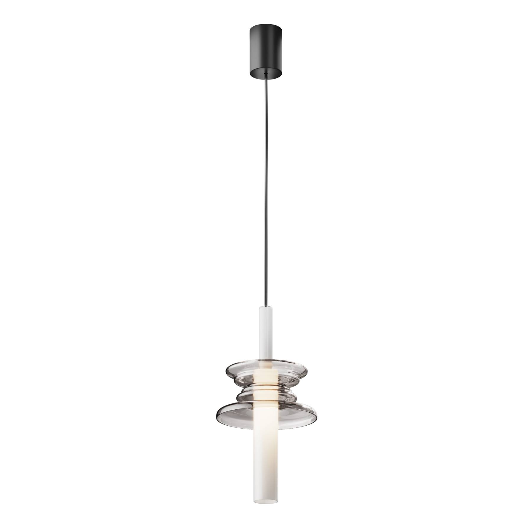 Уникальная многослойная конструкция в образе звуковой волны. Магнитная потололчная чаша из металла без видимых креплений. Плафон-трубка из белого полупрозрачного стекла. Декоративный волнообразный «звуковой» элемент из литого стекла в центре плафона. Цвета - синий, черный, золото, серый. Источник света - лампа с цоколем G9.