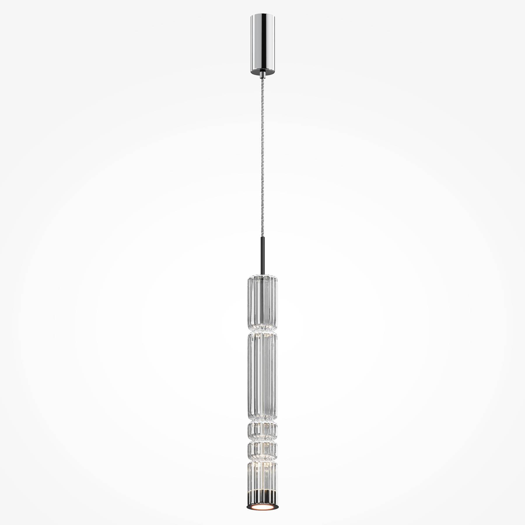 Арматура - металл, цвет - хром, черный. Цилиндрические плафоны из стекла с вертикальным рельефным рисунком в трех оттенках: прозрачный, коньячный, дымчатый. Метафора древнегреческих храмовых колонн в образе светильников. LED-источник света. Цветовая температура 3000К.