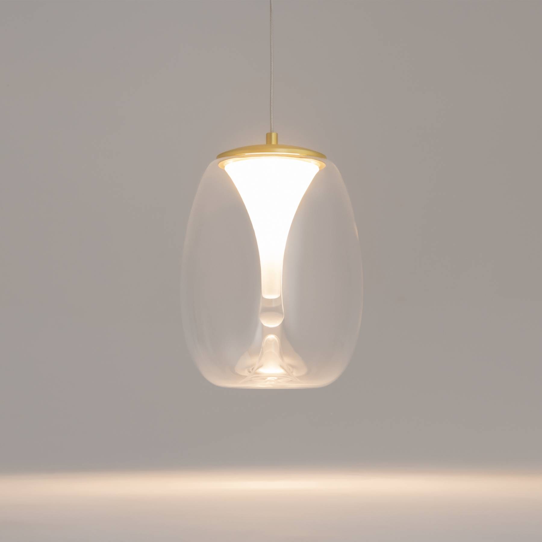 Цвет арматуры -  сатинированное золото.  Плафоны из двойного стекла.  Внешние плафоны  в двух  цветах: прозрачный и гальванизированный серый с эффектным градиентом - придают освещению глубину и насыщенность. LED источник света с цветовой  температурой 3000K. Провод подвесных светильников  регулируемый - длина 3  метра. Идеальны для помещений с высокими потолками.