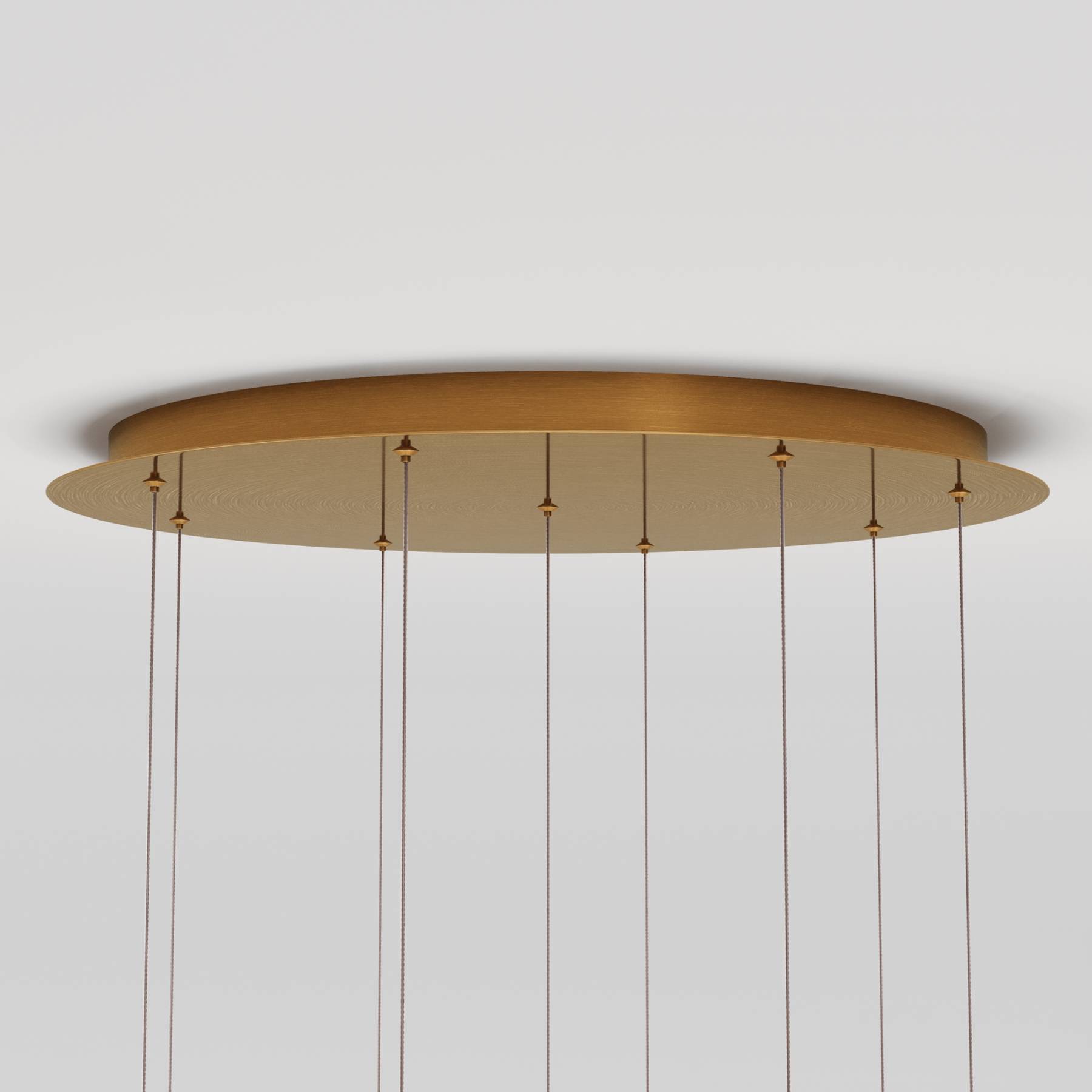 Цвет арматуры — латунь, плафоны из прозрачного акрила. Подвесной светильник с прочными и легкими плафонами из акрилового стекла снаб жен встроенным LED-источником света. LED-модуль дает теплый свет с цветовой температурой 3000К. Длина провода — 3 метра, ее можно  регулировать для установки в помещении с высокими потолками.