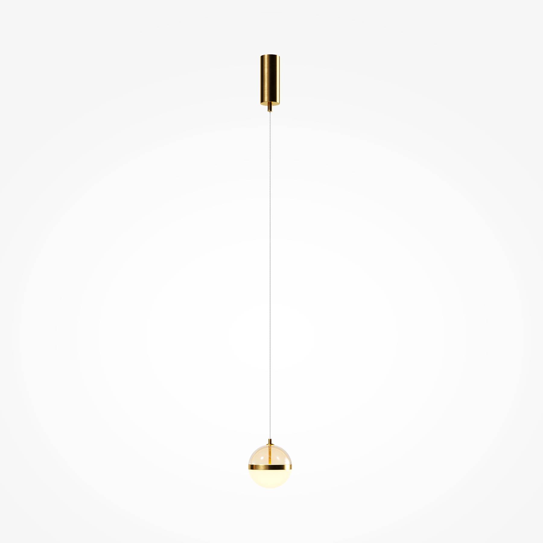 Черная потолочная чаша дополнена финишным антибликовым покрытием sandy, декоративный элемент плафона выполнен из металла цвета сатинированной латуни. Сочетание двух фактурных стекол в плафоне: нижняя полусфера из матового белого стекла для создания мягкого рассеянного света, верхняя часть плафона - из тонированного янтарного стекла. Внутри установлен LED-модуль, создающий равномерное освещение, направленное вверх и вниз. Цветовая температура – 3000К, угол рассеивания — 120°.