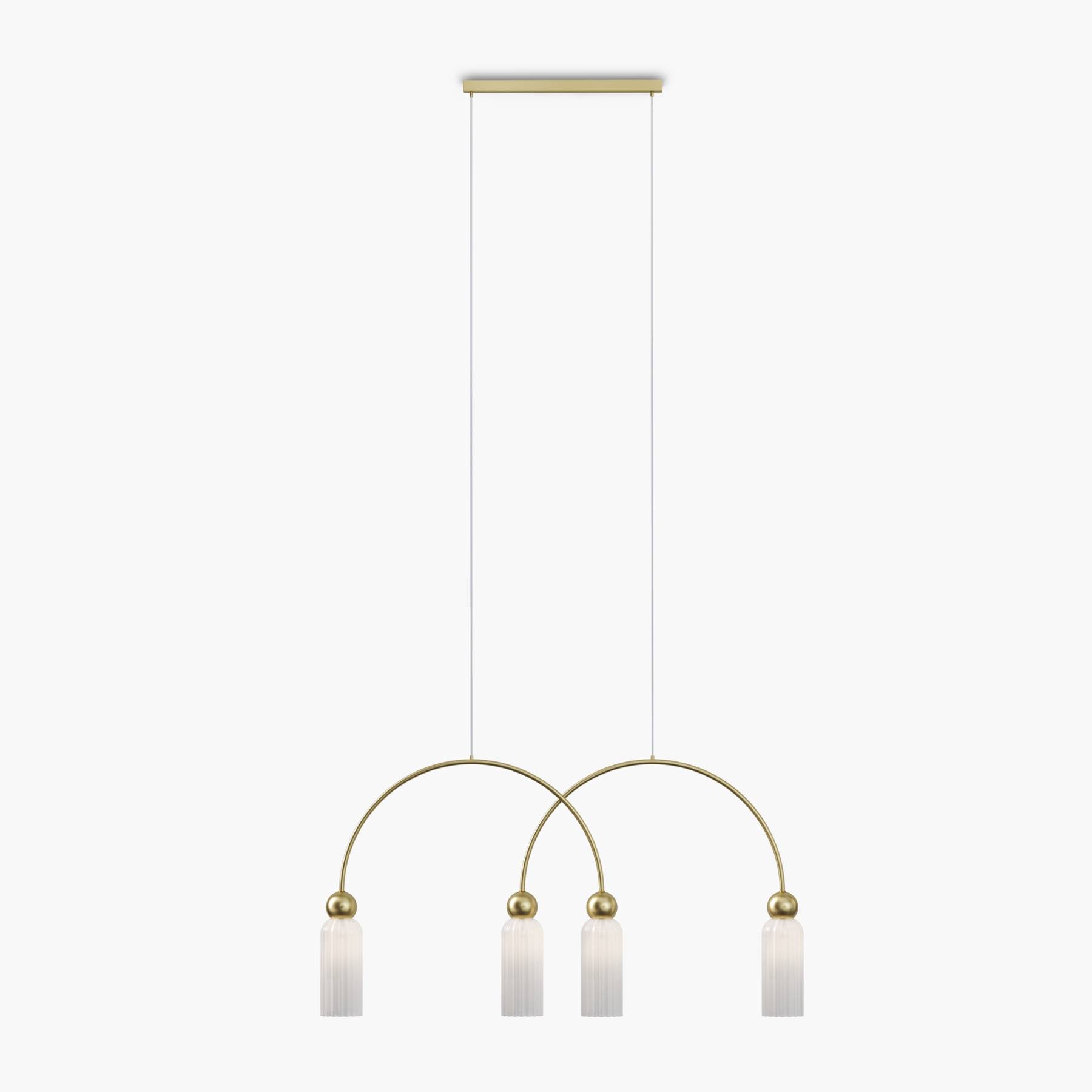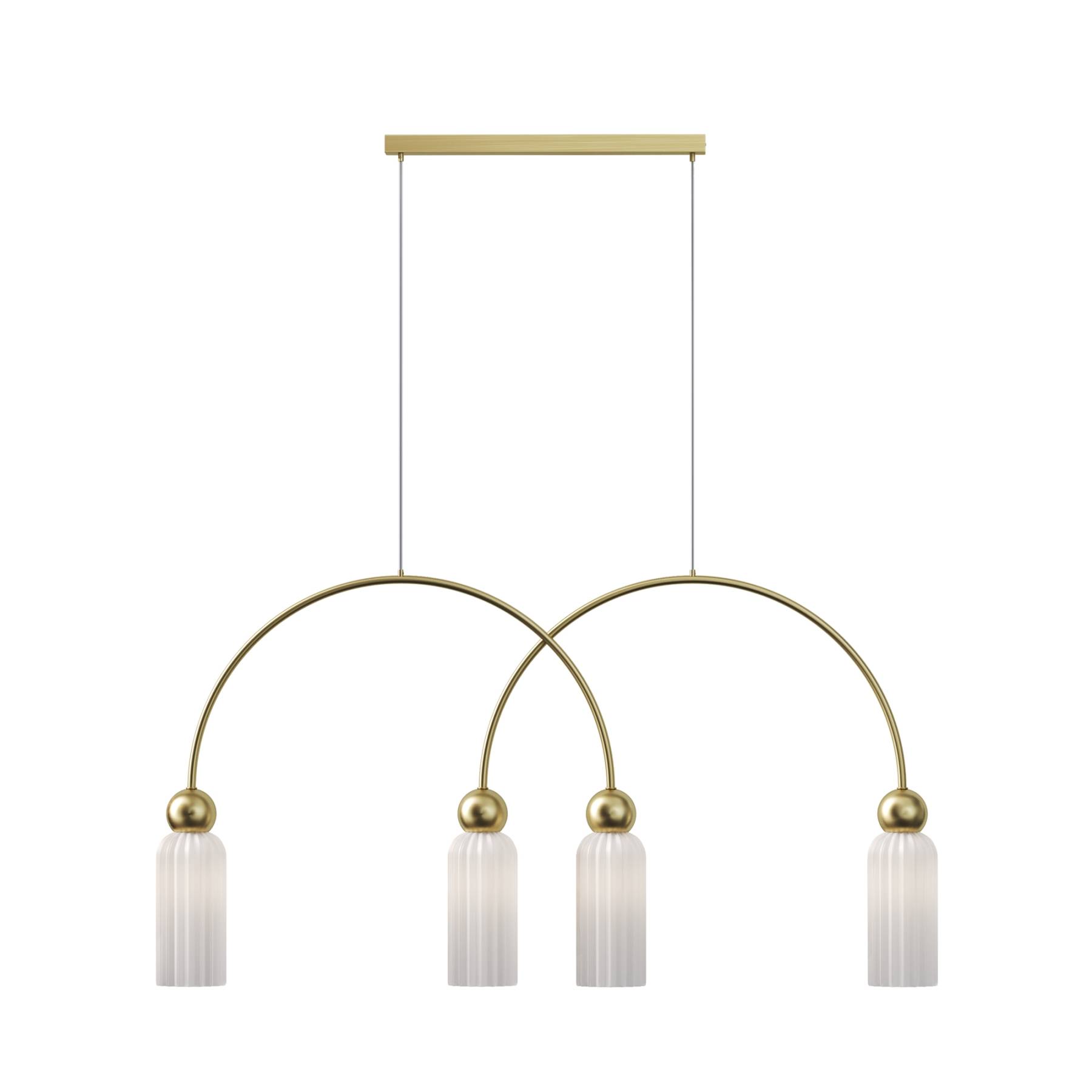 Металлическая арматура в цвете золота.Стеклянные плафоны нескольких цветов: коньячный, белый, серый. Рифленая поверхность стекла усиливает световые эффекты. Источник света: цоколь Е14 и G9. Высота подвесных светильников регулируется сегментами штанги или с помощью трехметрового провода. Серия может использоваться в помещениях с высокими потолками. Доступны подвесные и настенные модели для создания разнообразных световых композиций.