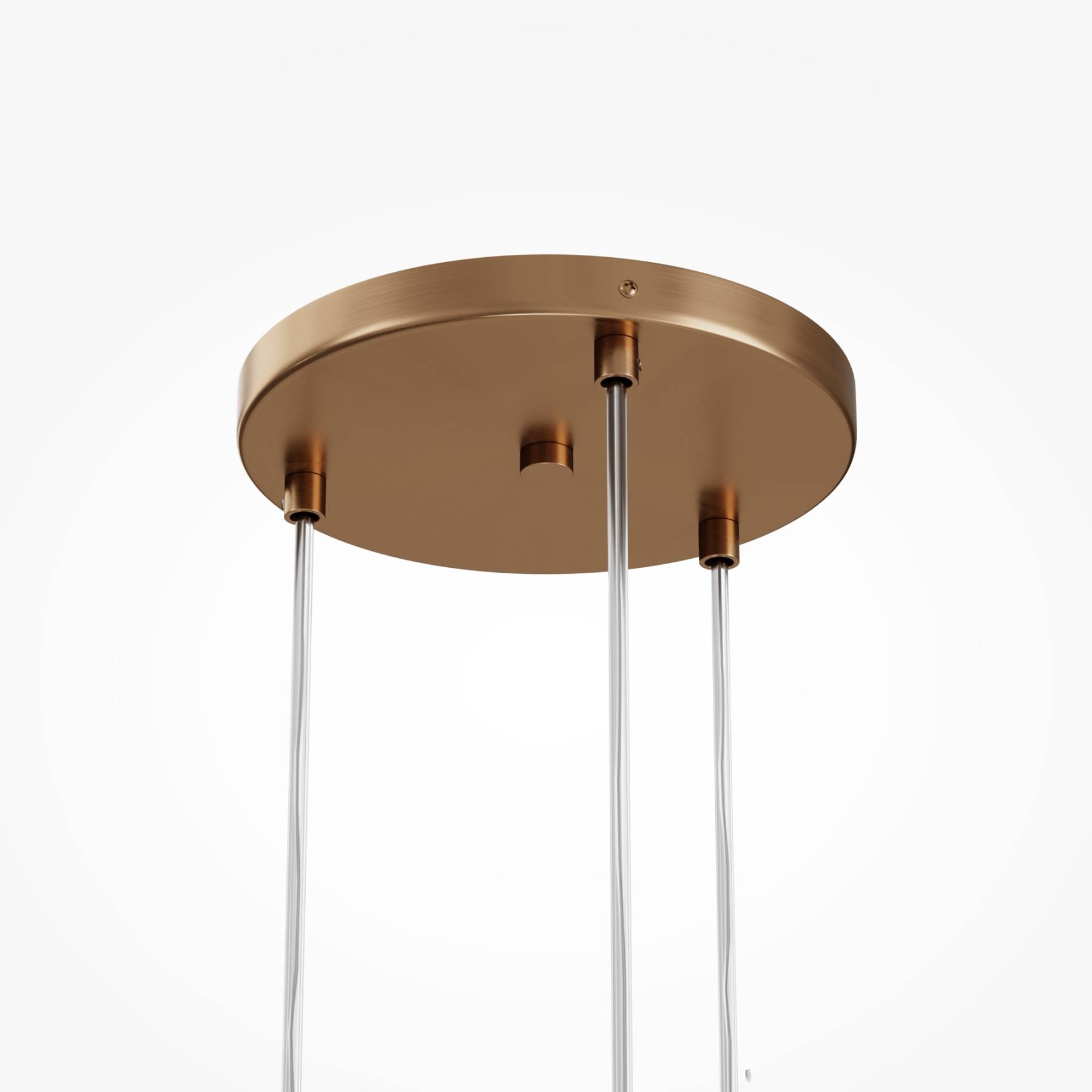 Материал арматуры – металл, цвет - золото, белый, черный. Округлые плафоны из матового белого стекла. Универсальные формы, минималистичный дизайн. Цоколь - E14. Лампы не входят в комплект. Регулируемая высота подвесных светильников.