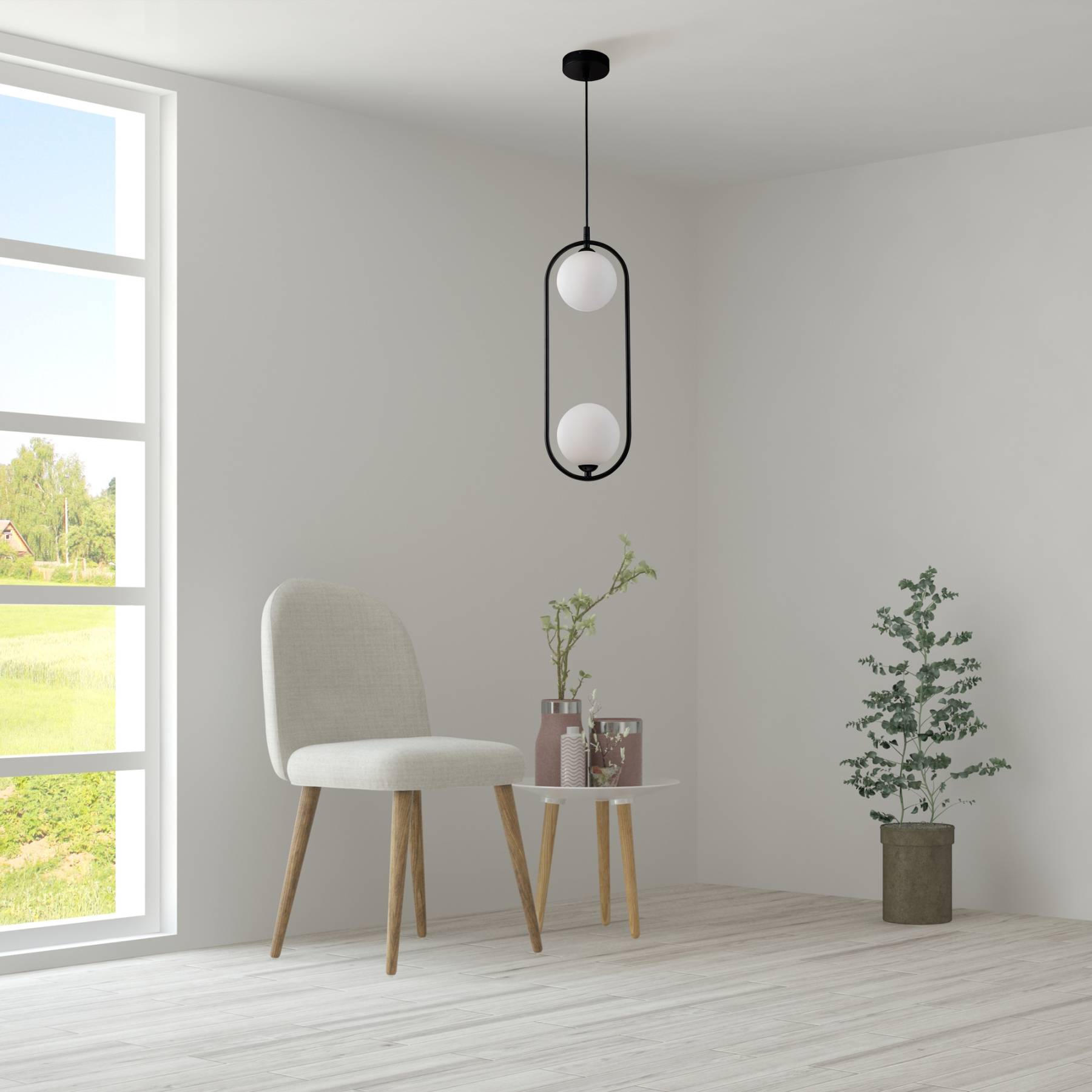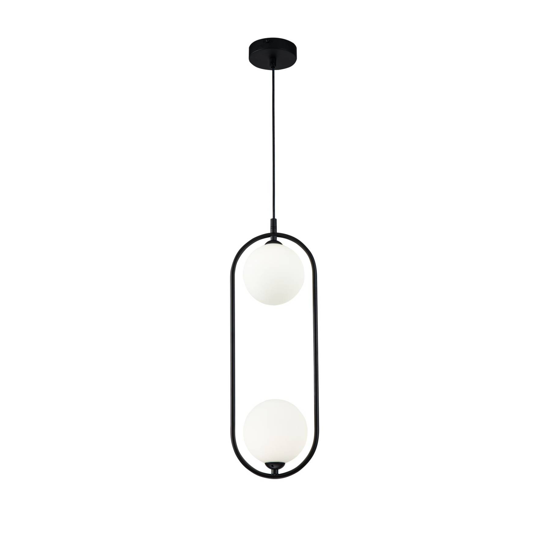 Арматура из металла в трех оттенках: белый, черный, латунь. Плафоны-сферы закреплены на округлом металлическом каркасе. Материал плафонов — выдувное стекло, цвет — белый. Высота подвесных моделей регулируется.