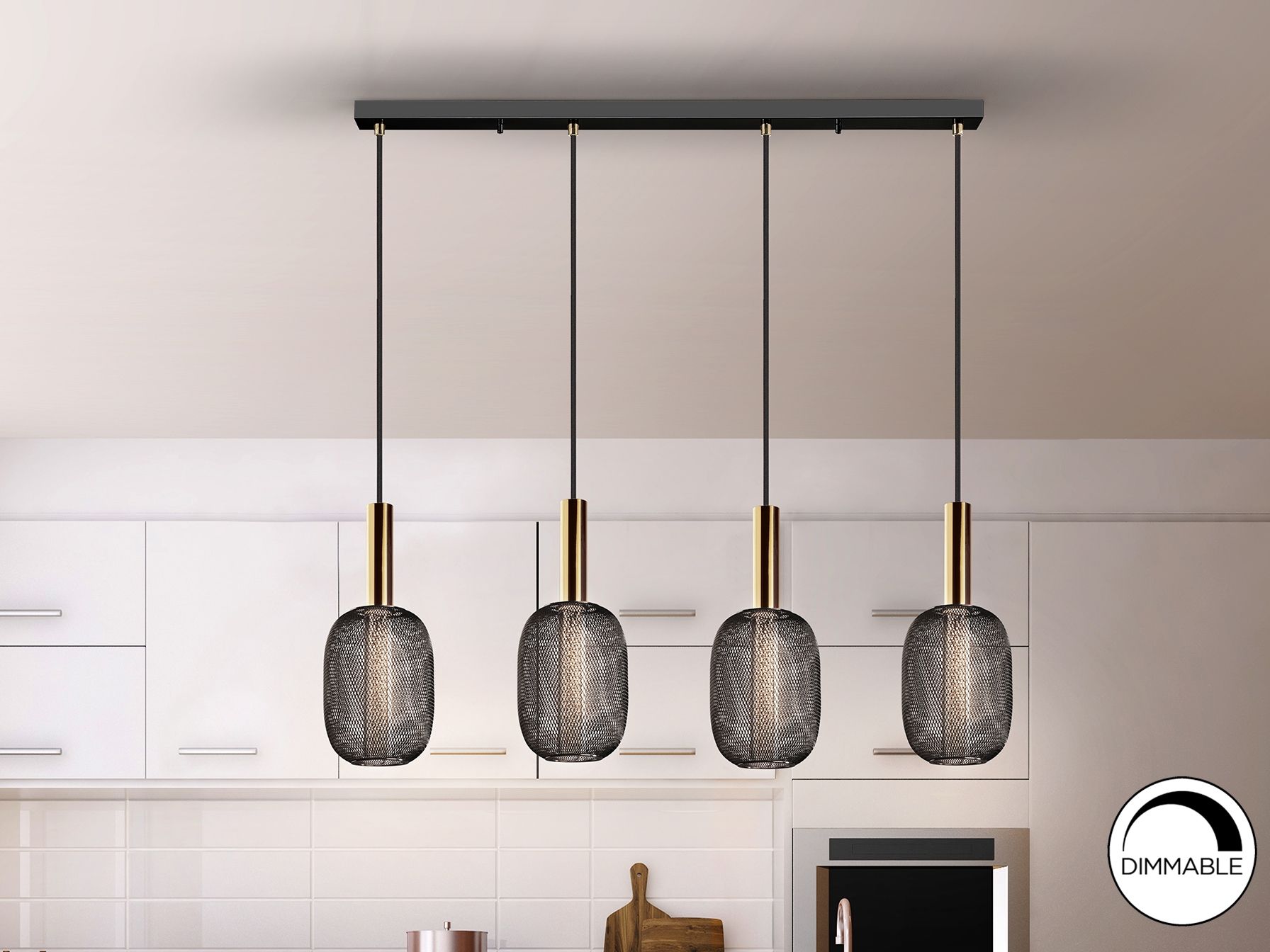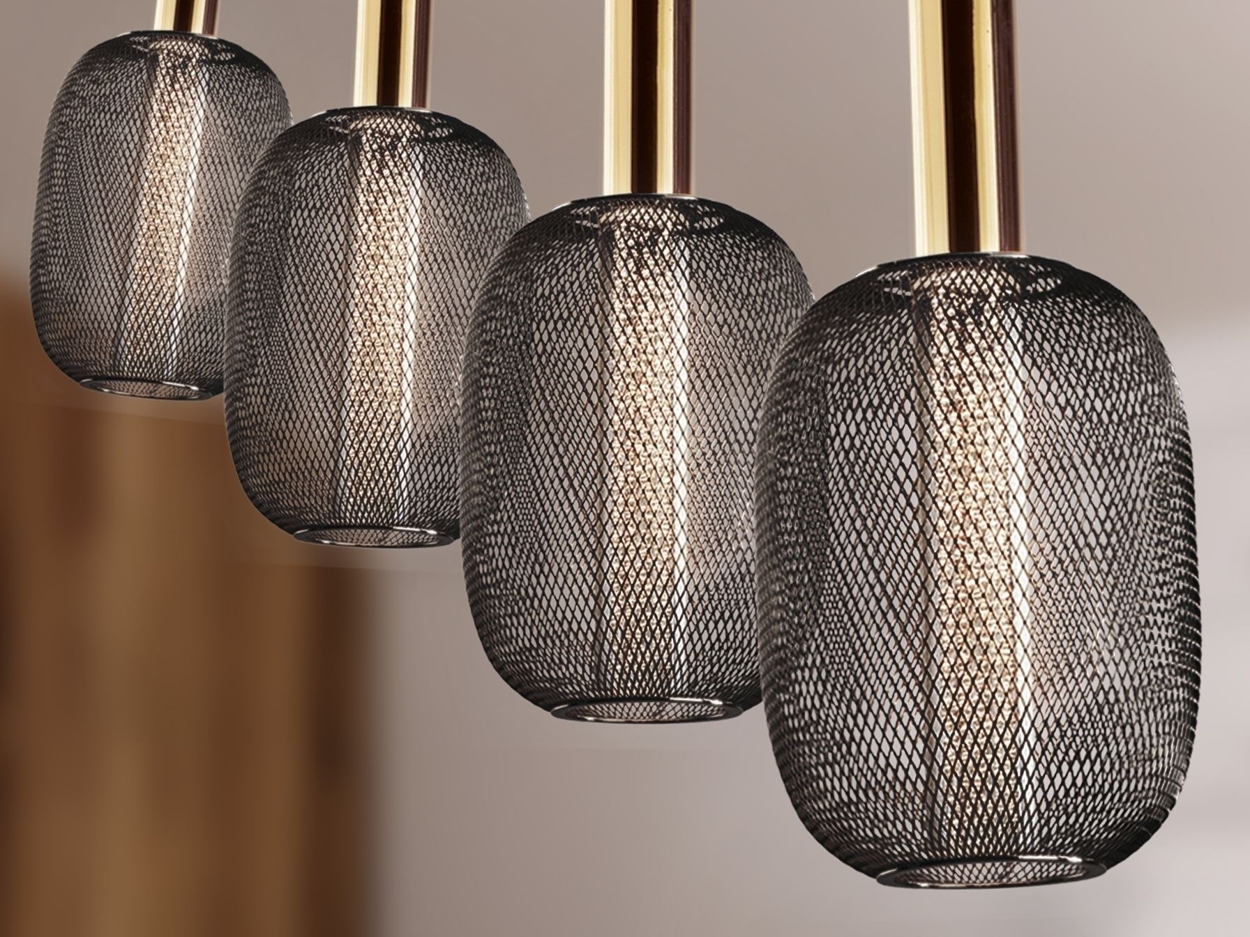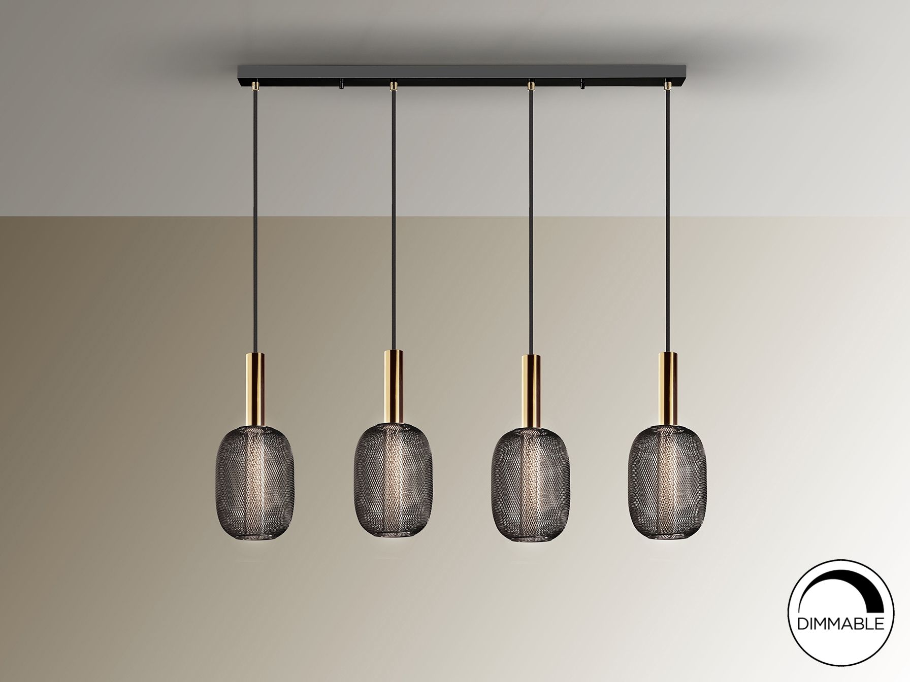 Светодиодный светильник из 4 лампочек из металла яркого золота и черного цвета. Двойной оттенок с внутренним прозрачным акриловым цилиндром с пузырьками и внешним овалом из металлической сетки черного цвета. Светодиод мощностью 20 Вт, 1800 лм, 3000 К. С РЕГУЛИРОВКОЙ РЕГУЛЯЦИИ.