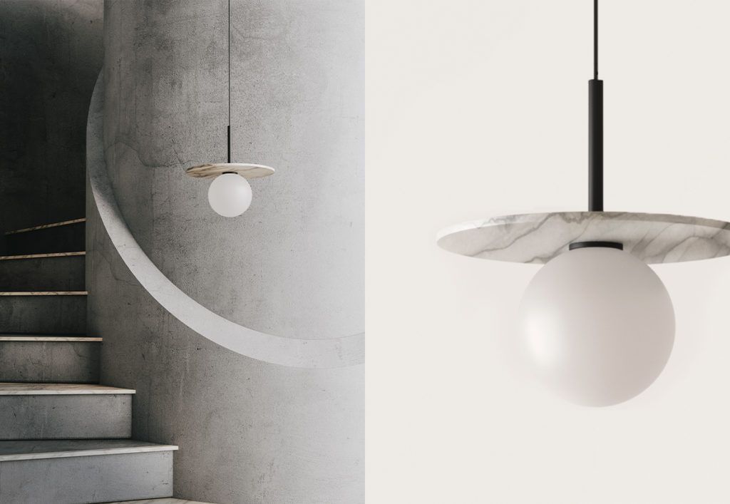 Потолочный светильник из матового черного металла с плафоном из опалового стекла со светодиодной подсветкой. Декоративный элемент из керамики, алебастра, золотого или черного металла, полосатого металла или стекла различных цветов на выбор. Лампочка в комплект не входит.