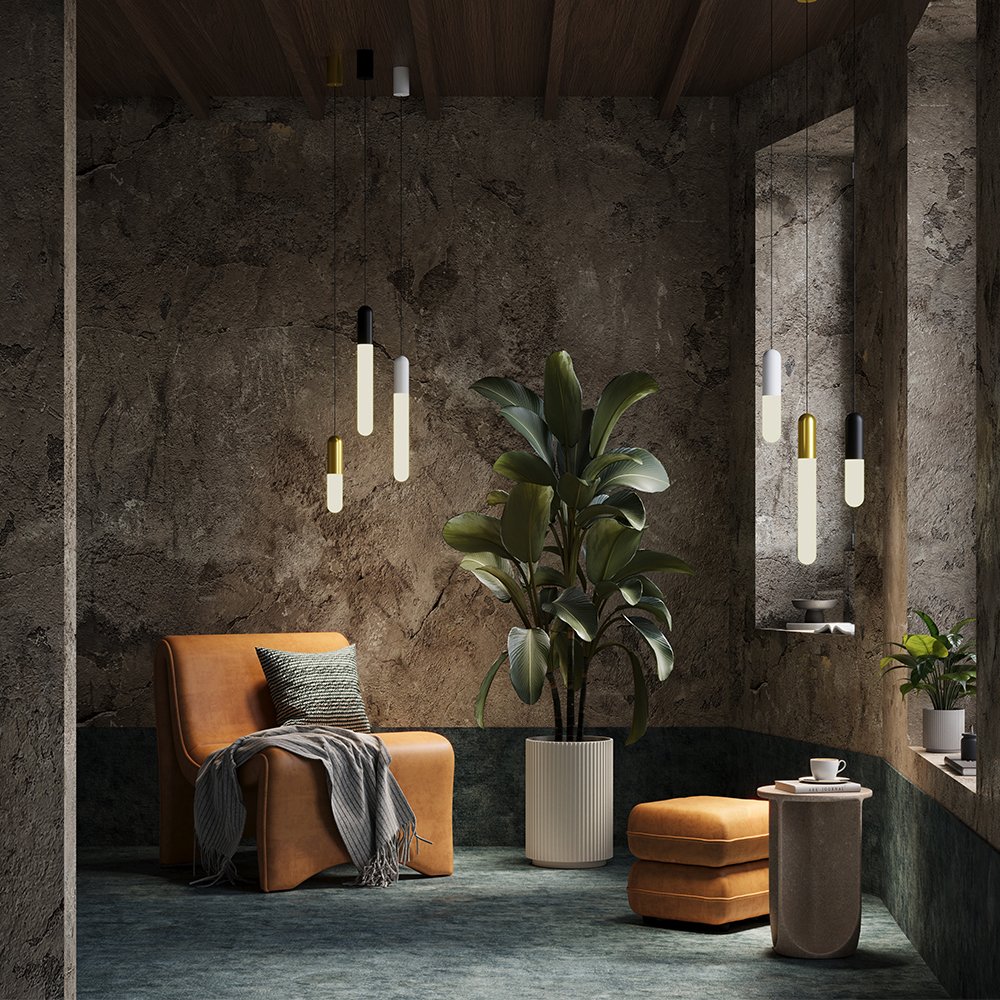 Материал корпуса – металл; цвета - черный, латунь и белый. Два размера на выбор. Механизм регулировки по высоте. Матовый рассеиватель из стекла. Широкий угол рассеивания. LED-источник света. Цветовая температура - 3000К или 4000К. Высокий коэффициент цветопередачи >90. Совместимость с драйверами DALI и Triac для изменения цветовой температуры и диммирования.