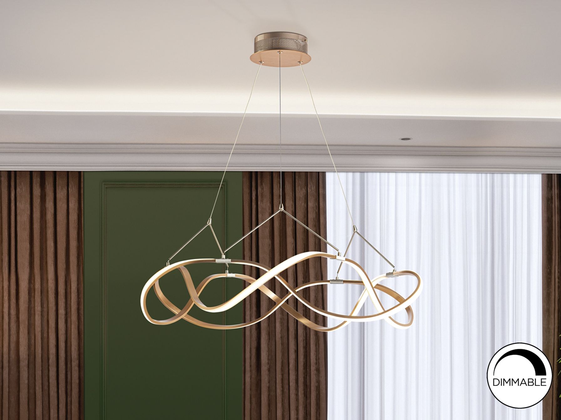 Подвесной светильник LED из алюминия с золотистым покрытием с хромированными элементами. Силиконовые рассеиватели опалового цвета, с регулируемой высотой. 45W LED, 4050 Lm, 3000 K. Диммируемый.