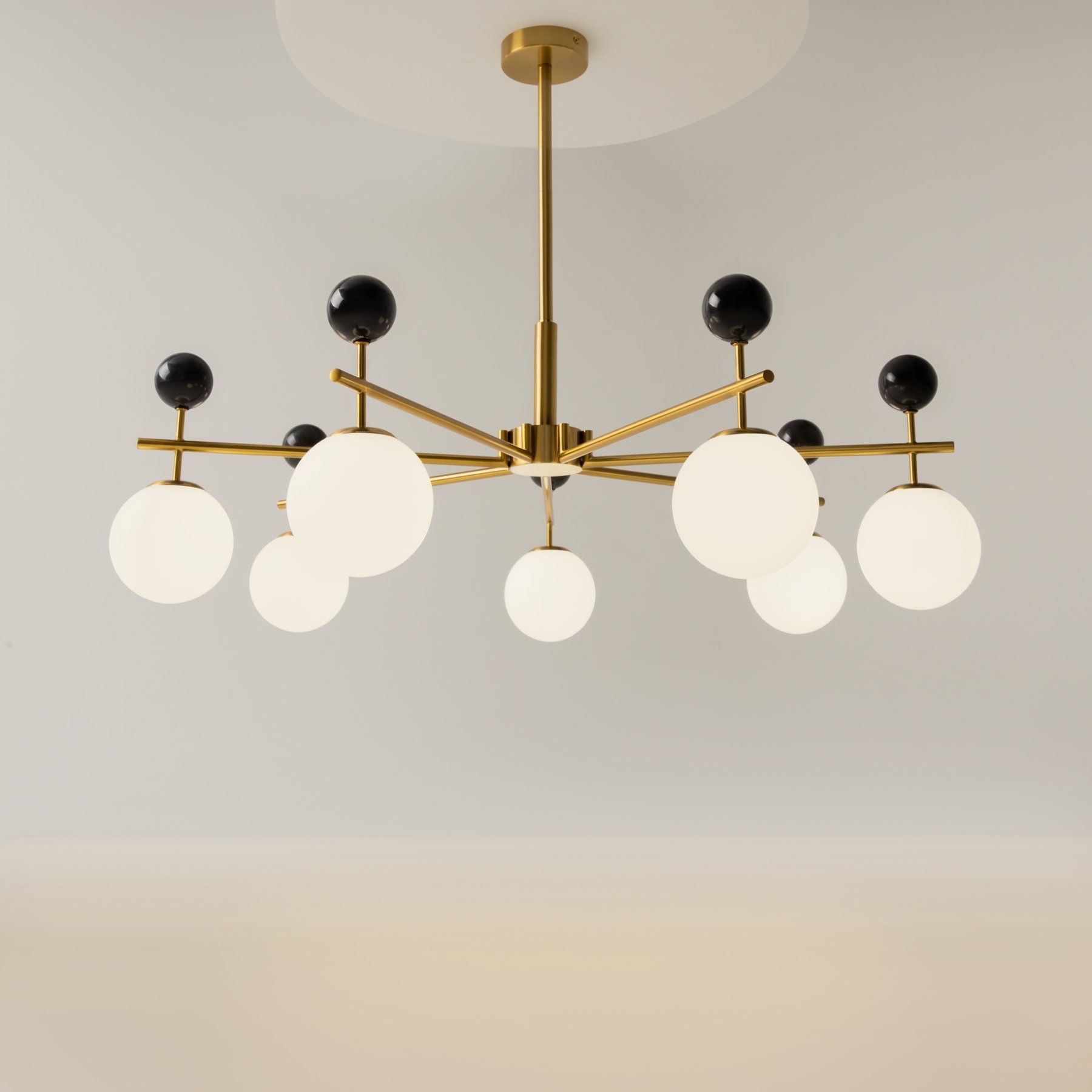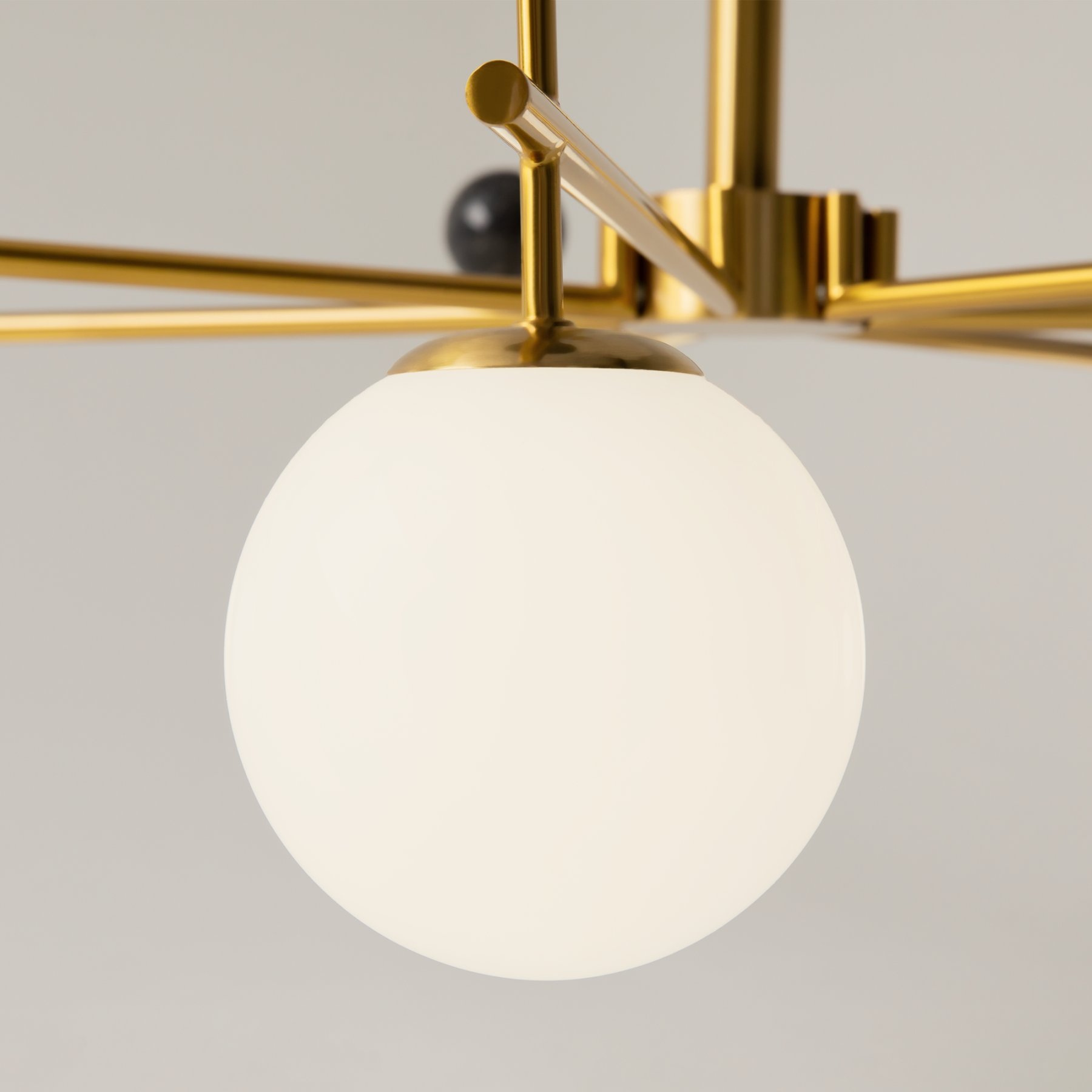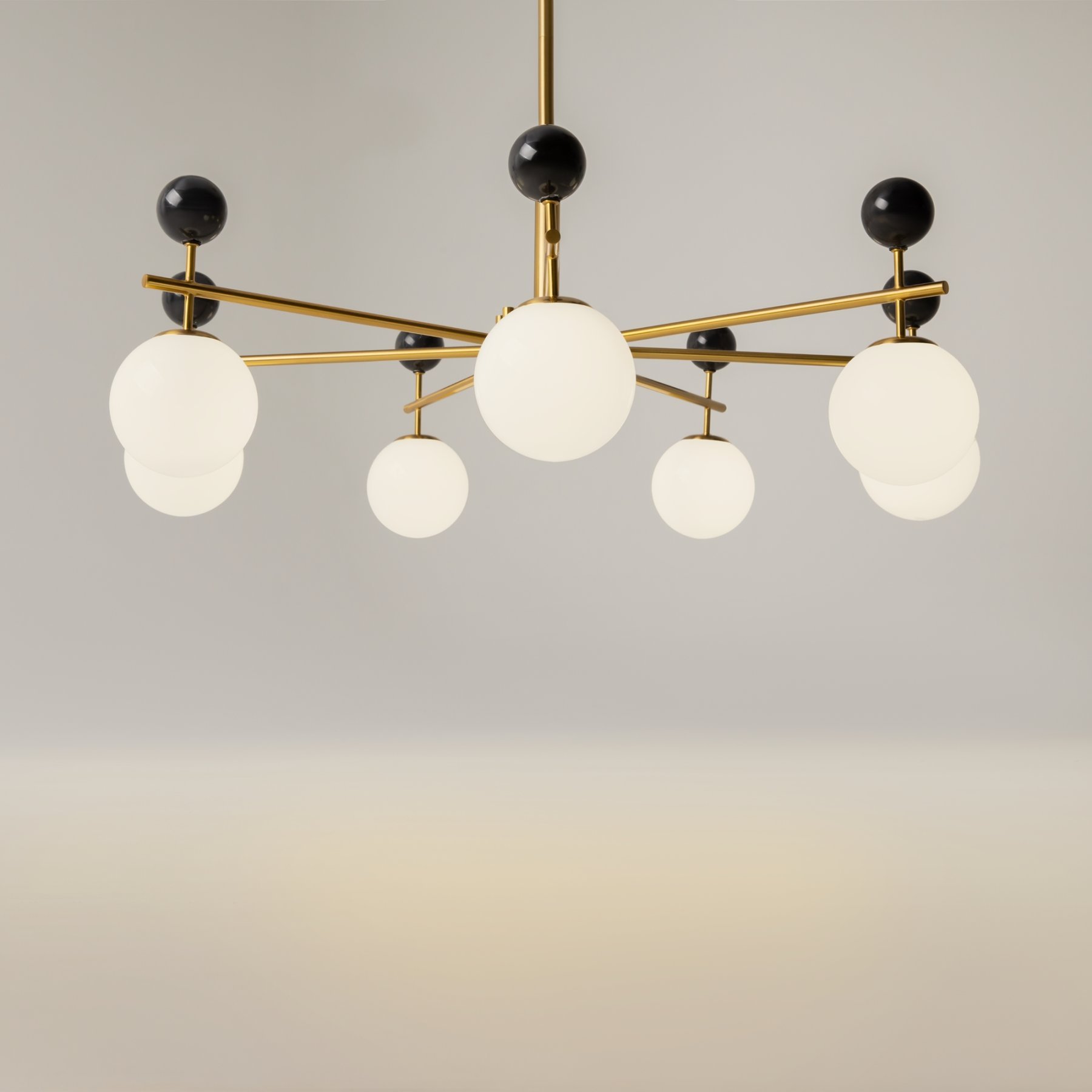 Серия Museo — это классика, переплетенная с современными тенденциями. В серии представлены подвесные светильники на 5 и 7 плафонов, а также настенный светильник (бра). Декоративные шары из натурального черного мрамора. Стеклянные плафоны из глянцевого белого стекла. Металлическая арматура светильников в цвете сатинированной латуни. Высота люстры регулируется разборной штангой. Сменный источник света с цоколем G9. Акцентная и яркая серия Museo создает эффектный визуальный контраст в интерьере.