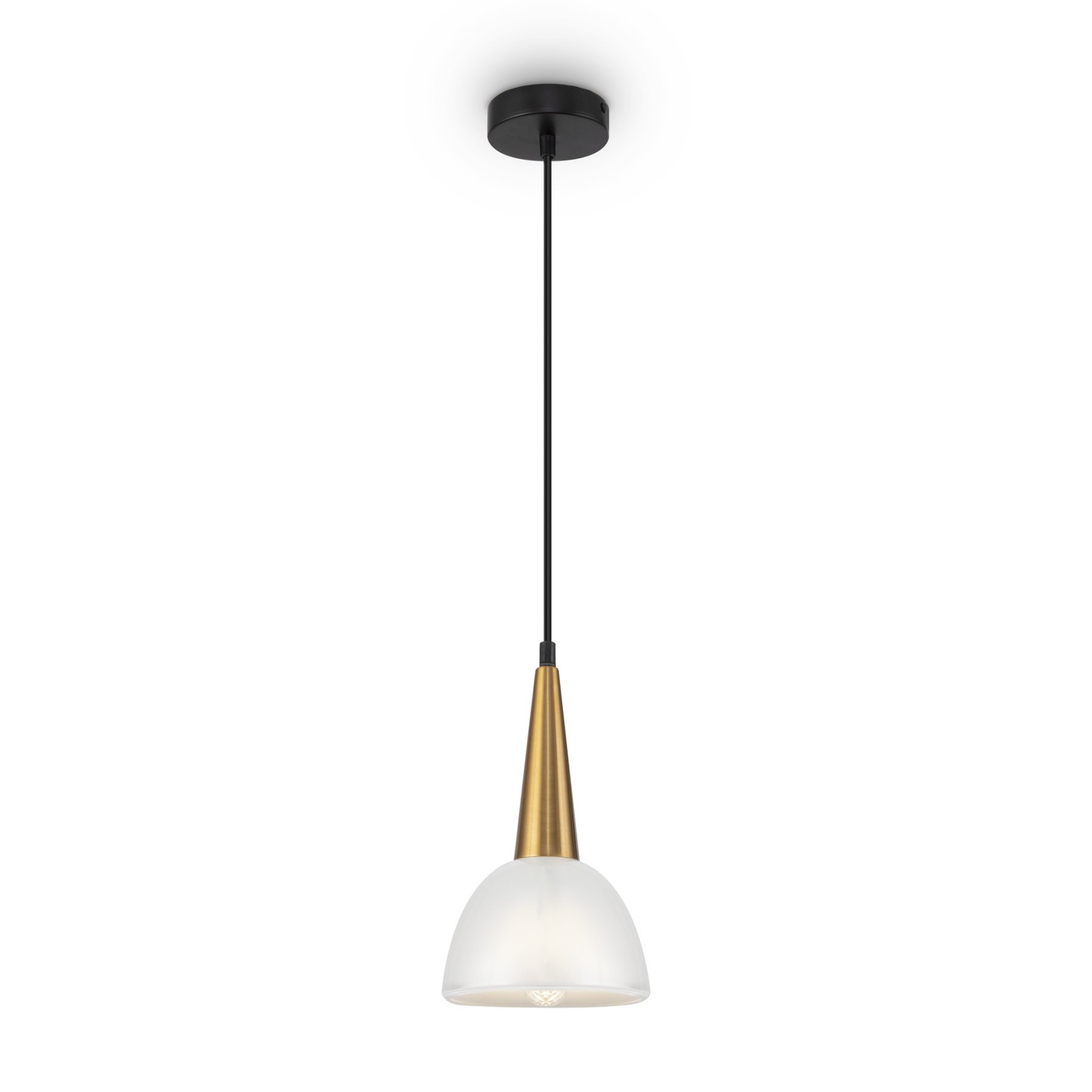 Лаконичный дизайн серии Noria с ретро-настроением идеален для зональной подсветки современных интерьеров. Металлическая арматура светильника окрашена в черный и золотой цвет – классический дуэт, актуальный для любой интерьерной палитры. Широкий плафон выполнен из белого стекла. Он обеспечивает равномерное и мягкое распределение светового потока. Такое освещение отлично подойдет для зон отдыха в гостиной, создаст уютную атмосферу в кафе и ресторанах. Плавные, обтекаемые формы придают светильнику визуальной легкости. Современный подвес без труда интегрируется в различные стили: лофт, минимализм, скандинавский, эклектика, техно.