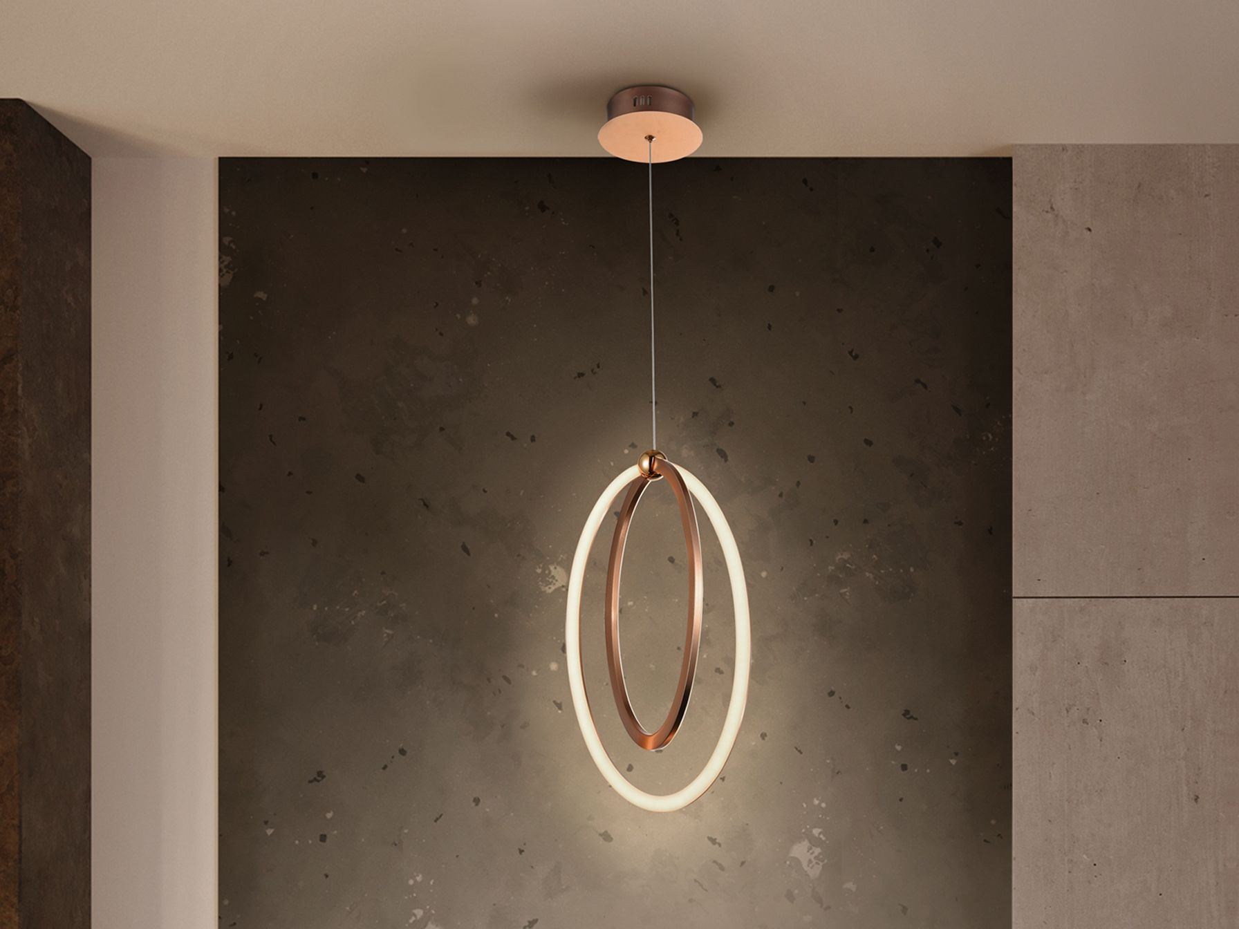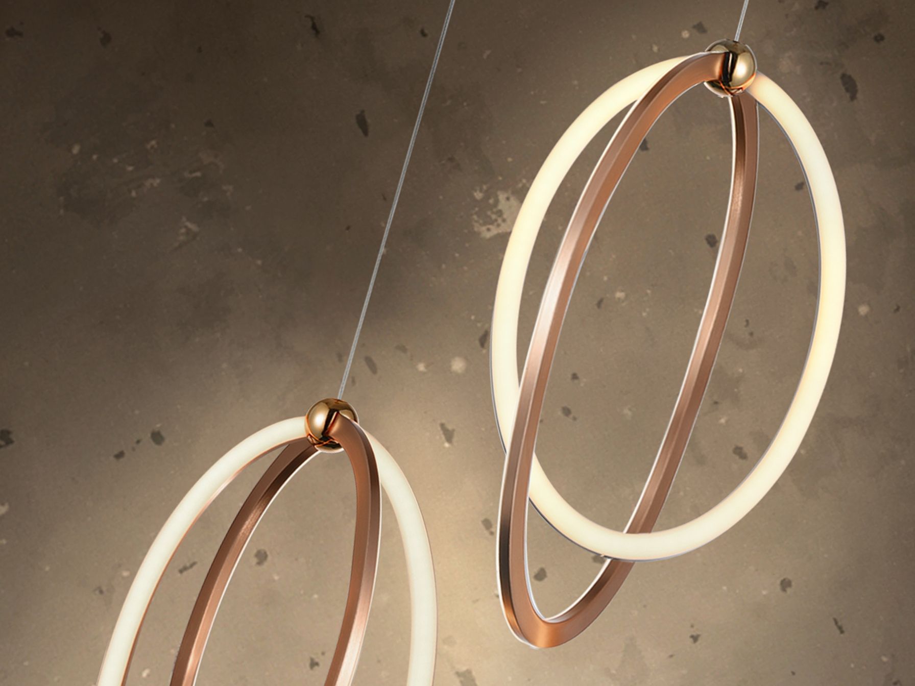 Подвесной светильник LED из алюминия с матовой полировкой с золотистым покрытием. Силиконовые рассеиватели опалового цвета, с регулируемой высотой. 22W LED, 1980 Lm, 3000 K.