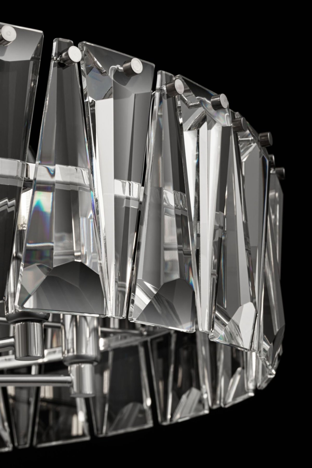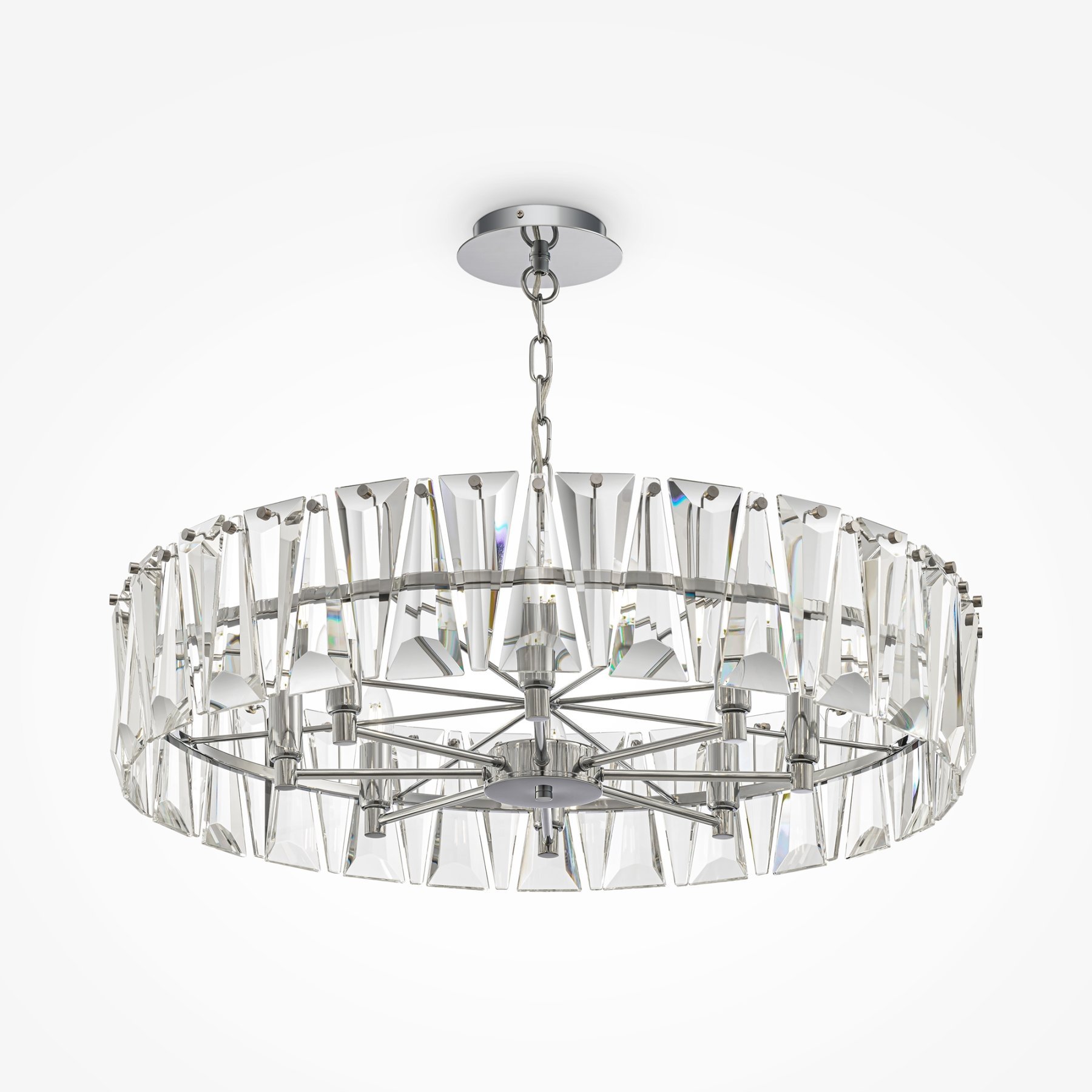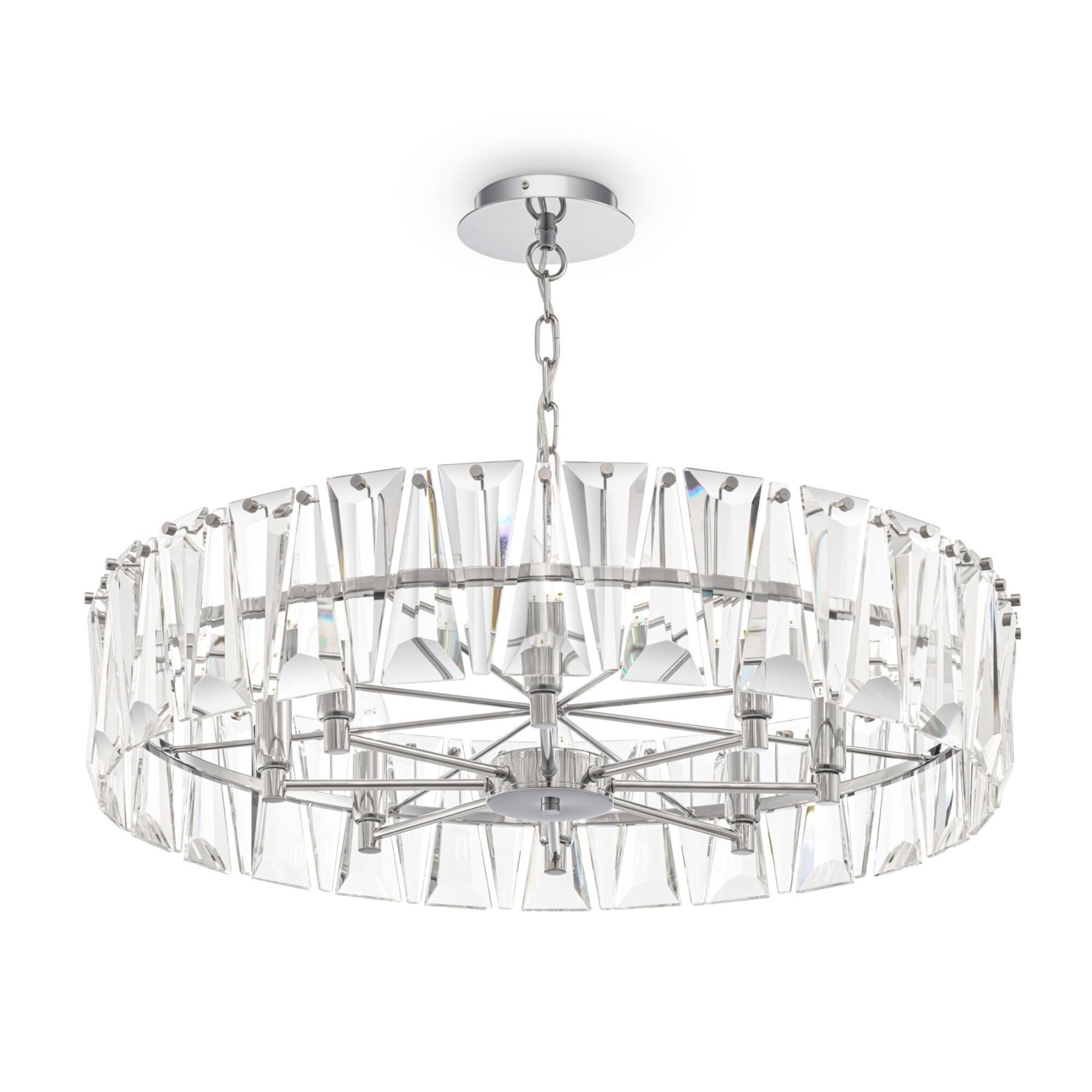 Материал арматуры – металл, оттенки – хром и золото. Декор – массивные крис таллы сложной огранки. Высота подвесных моделей регулируется длиной цепи. Источник света - лампа с цоколем Е14.