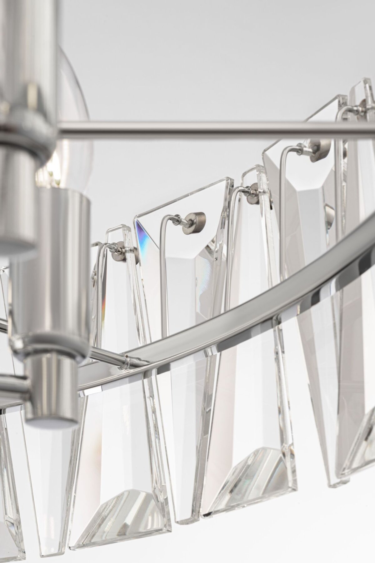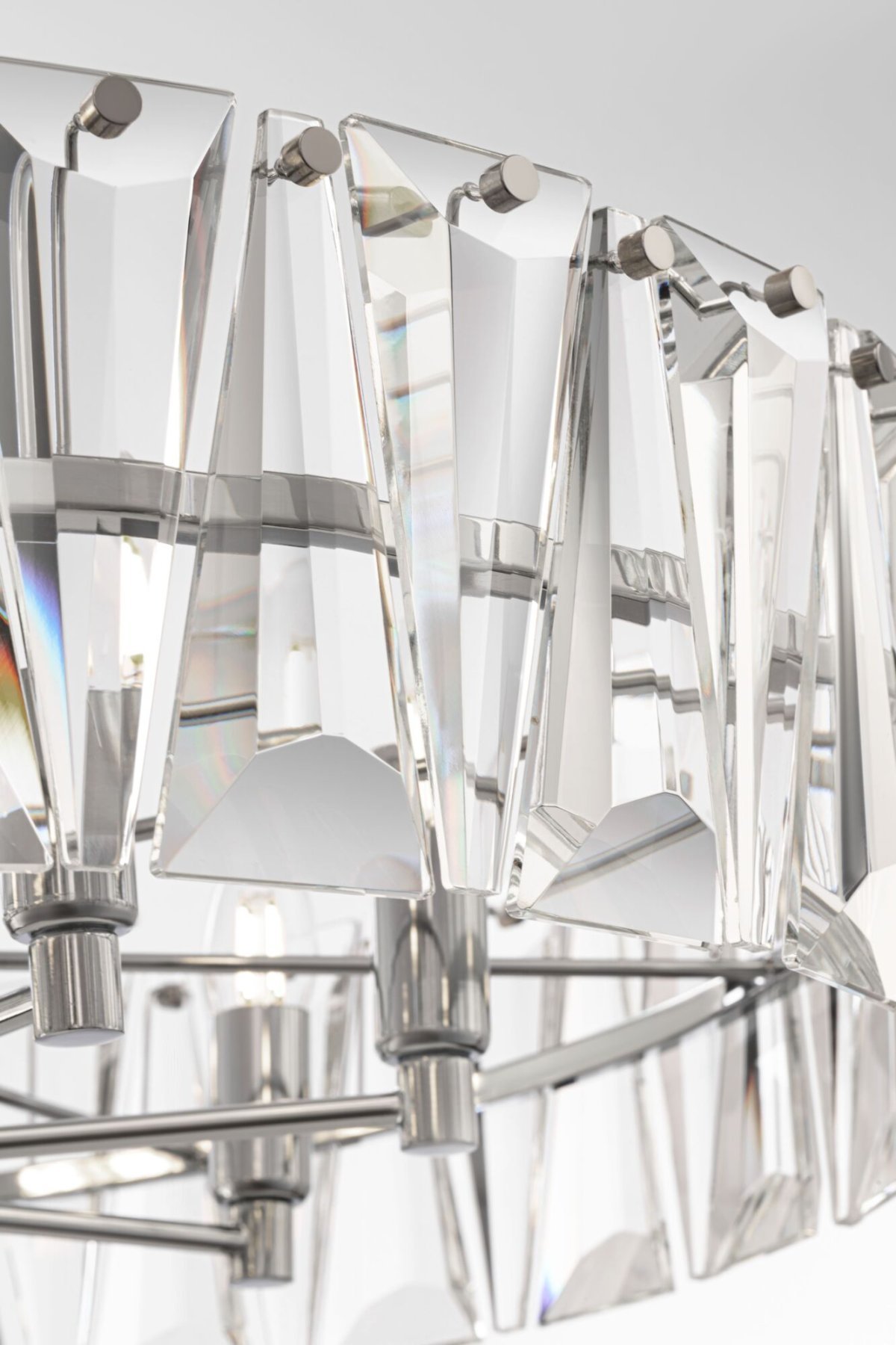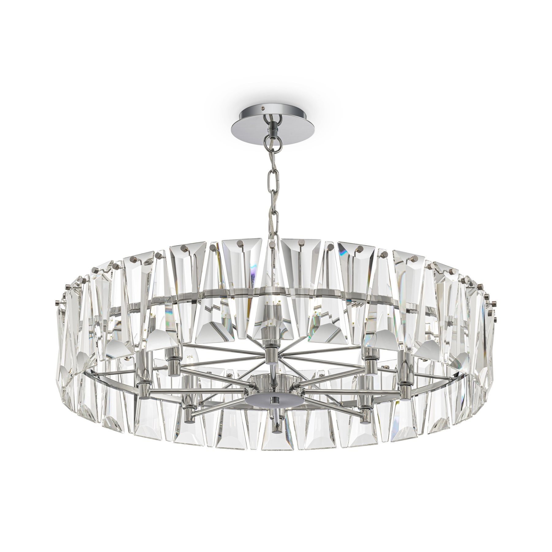 Материал арматуры – металл, оттенки – хром и золото. Декор – массивные крис таллы сложной огранки. Высота подвесных моделей регулируется длиной цепи. Источник света - лампа с цоколем Е14.
