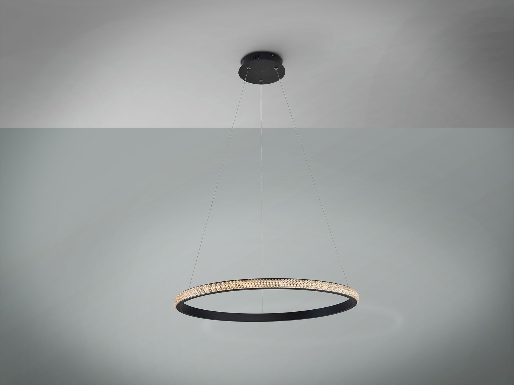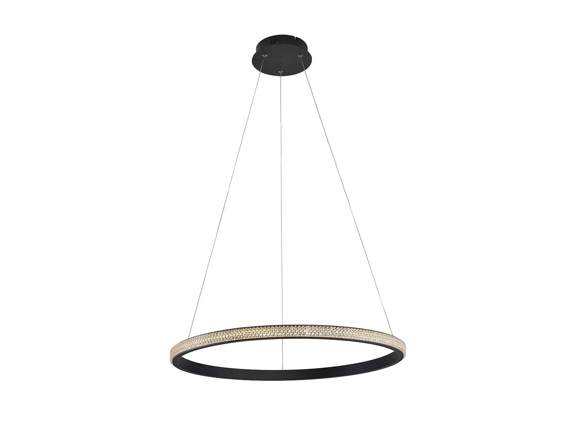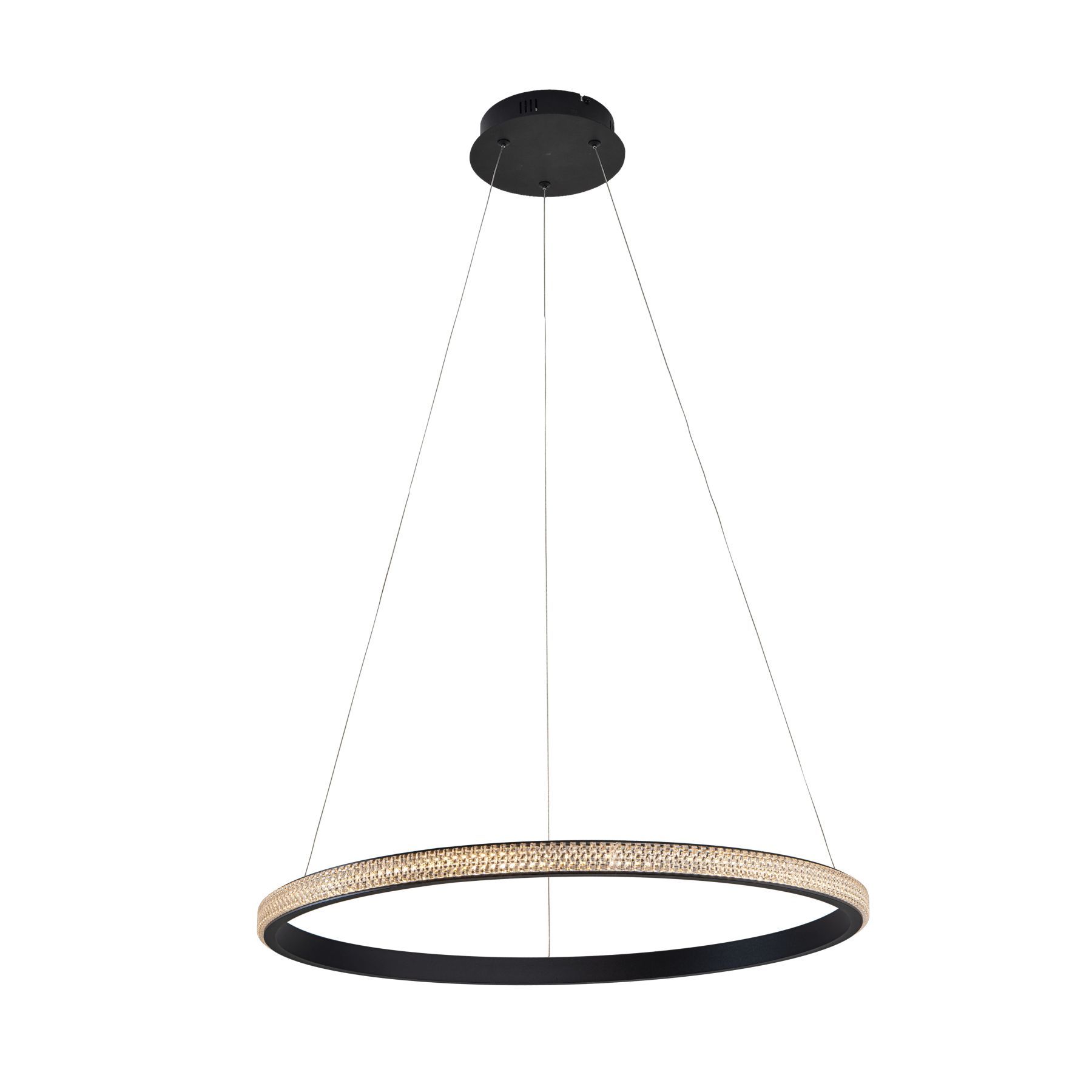 Подвесной светильник из металла и алюминия, зернистое матовое чёрное покрытие. Кольцо с декоративным рассеивателем из прозрачного акрила. 25W LED, 1250 Lm, 3000K.