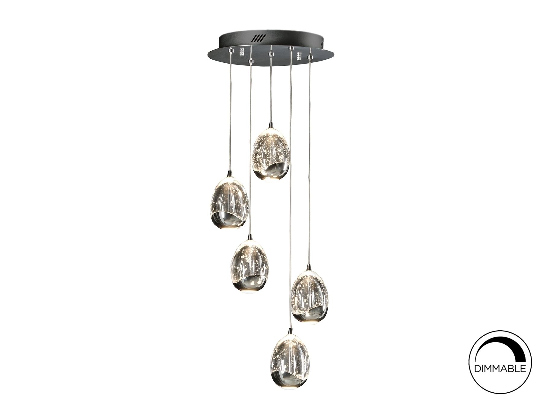 Подвесной светодиодный светильник из металла с покрытием "хром", плафоны в форме капли из массивного стекла с декоративными пузырьками внутри, с регулируемой высотой. 25W LED. 2.400 lm. 3.000 K.