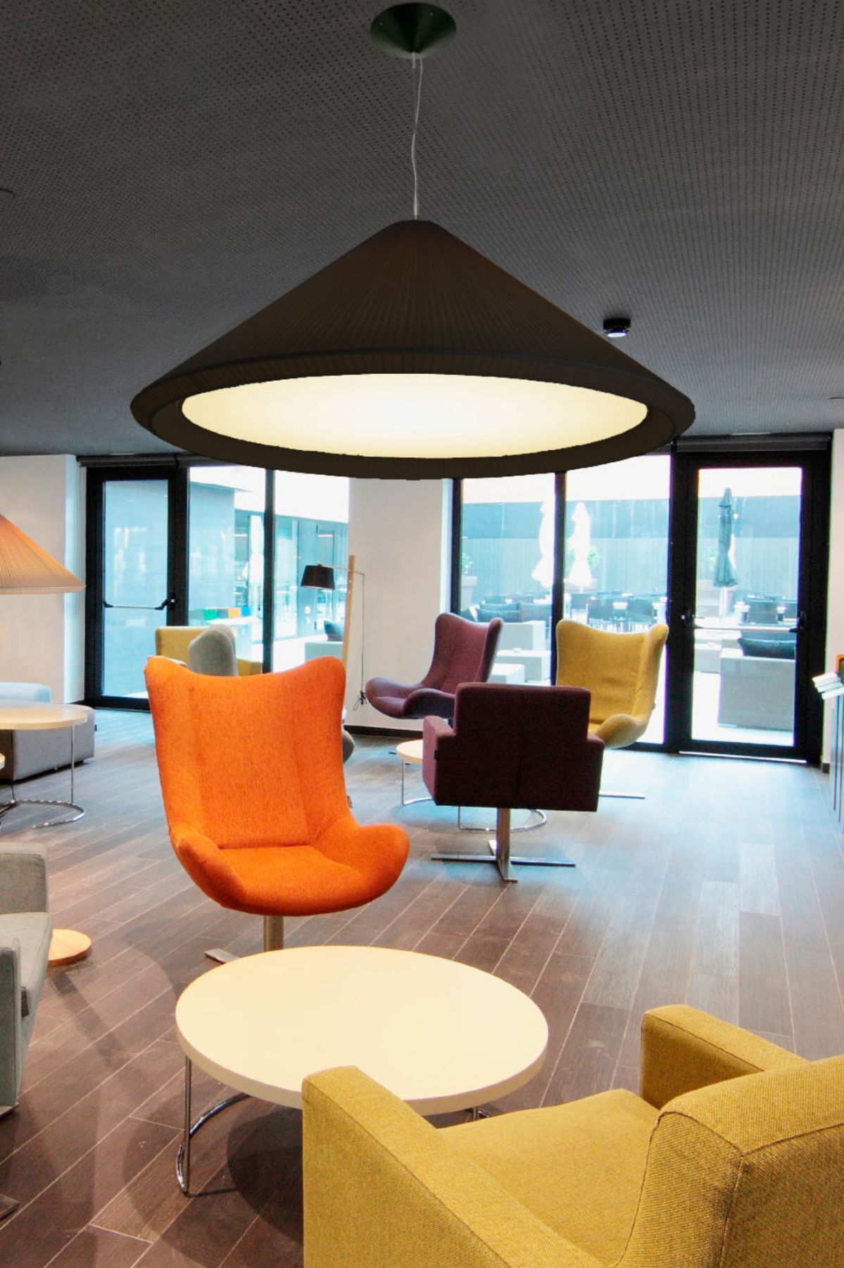 SAIGON IN — это подвесной светильник, используемый Nahtrang, доступный в различных цветах. Светильник имеет оригинальный абажур из лент, создающий оптическую иллюзию компактного абажура. SAIGON IN идеально подходит для домашнего освещения и гостиничных холлов.