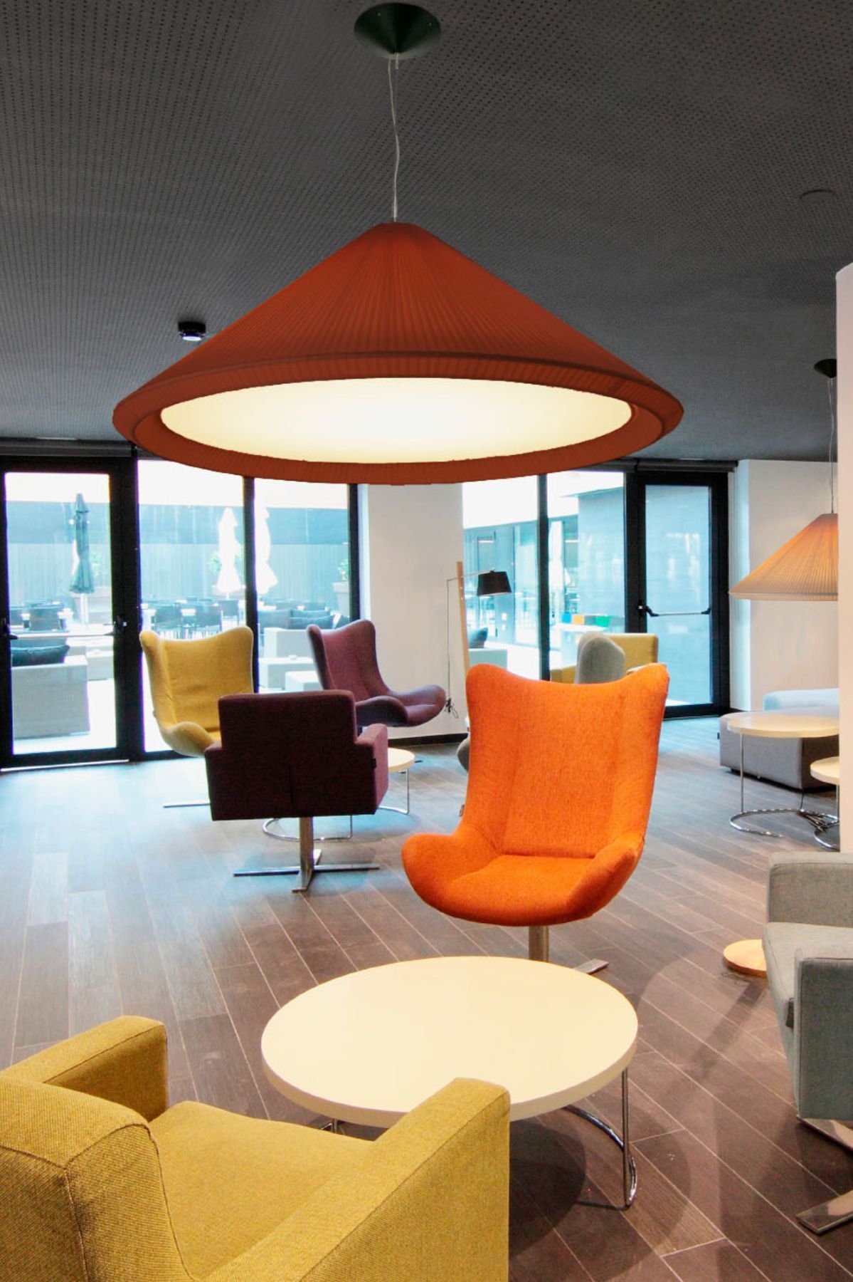 SAIGON IN — это подвесной светильник, используемый Nahtrang, доступный в различных цветах. Светильник имеет оригинальный абажур из лент, создающий оптическую иллюзию компактного абажура. SAIGON IN идеально подходит для домашнего освещения и гостиничных холлов.