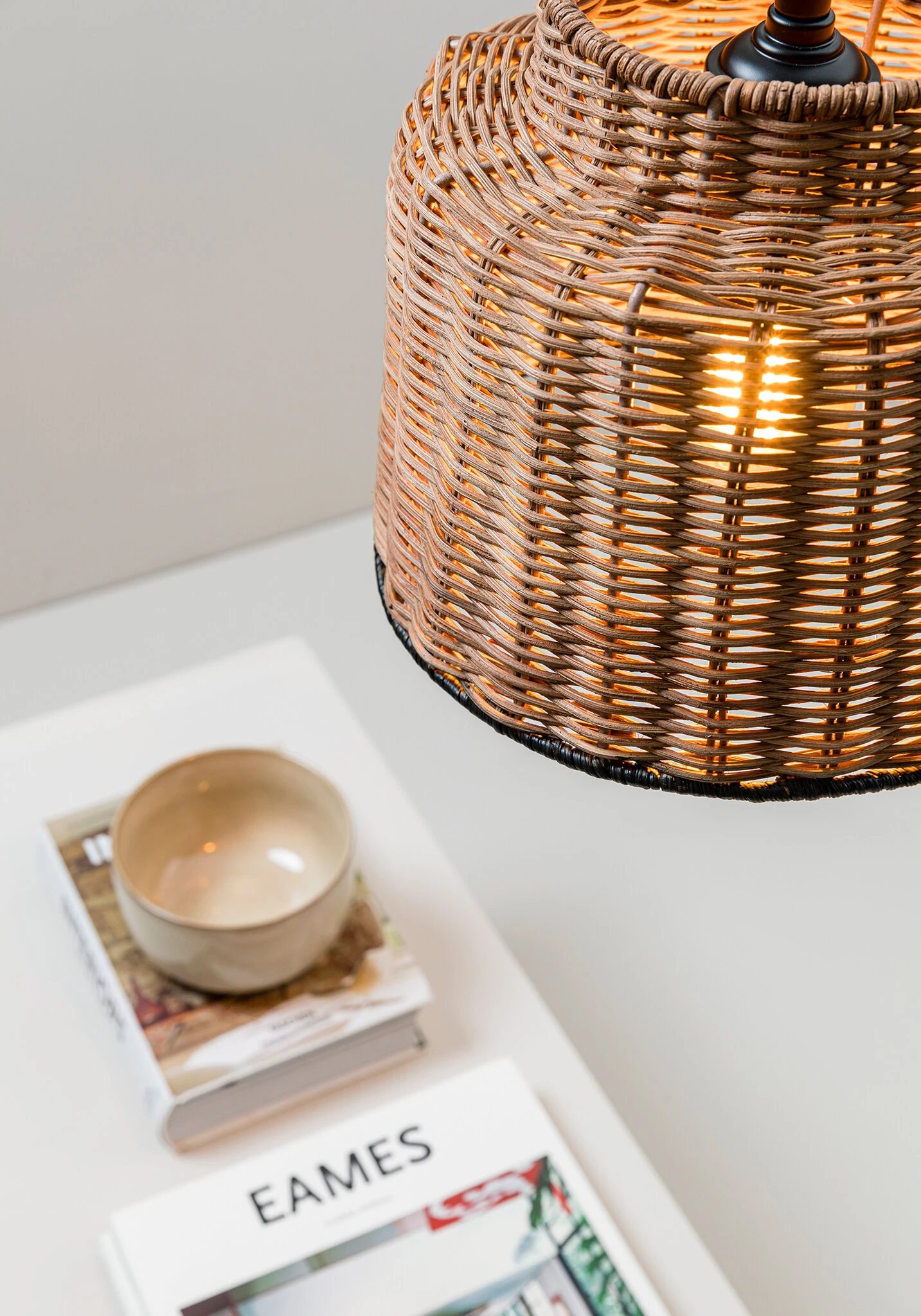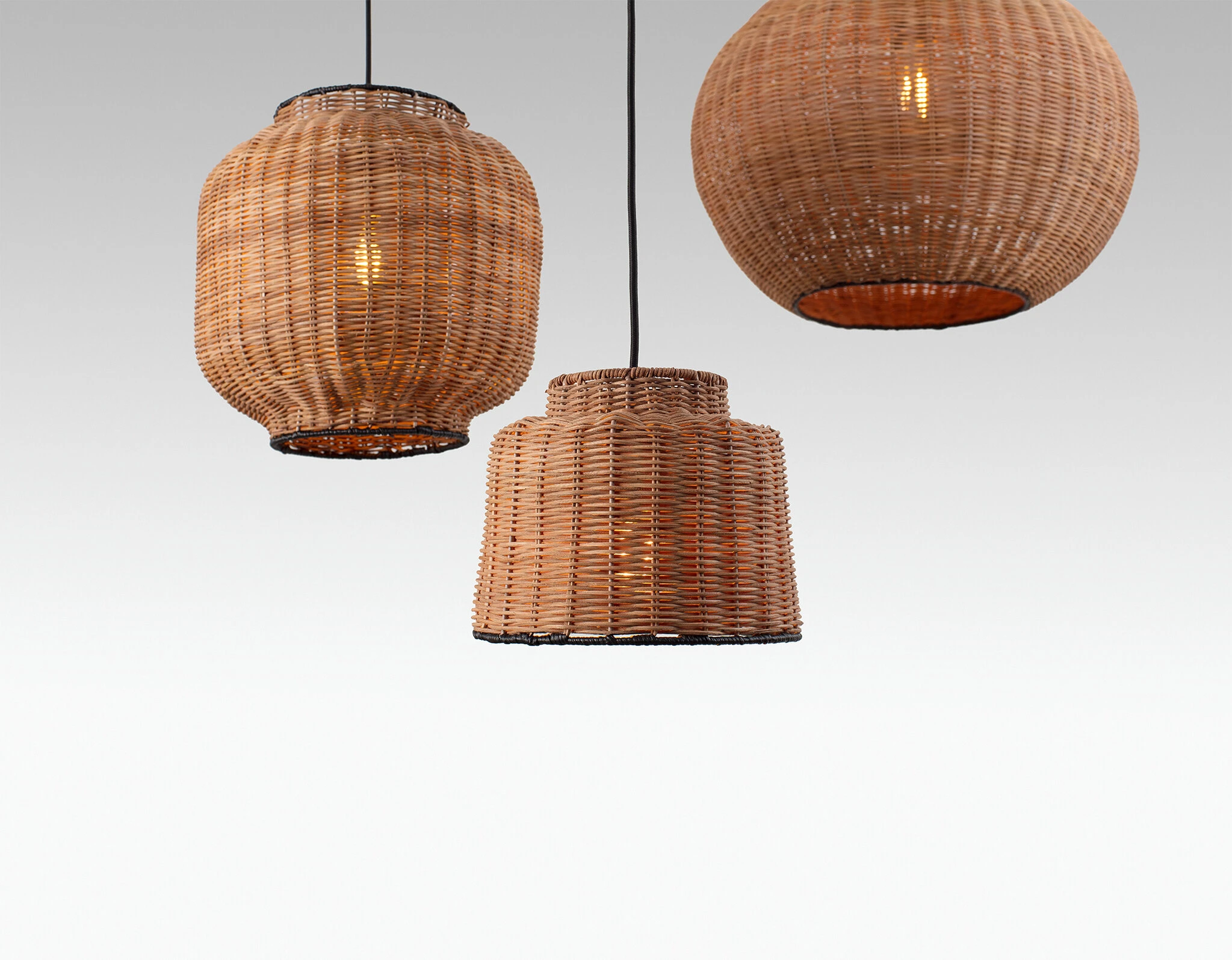 SAIPAN — подвесной светильник в средиземноморском стиле. Свет проецируется через ротанг абажура, неожиданно красивый эффект. Он идеально подходит для освещения спален и гостиных.