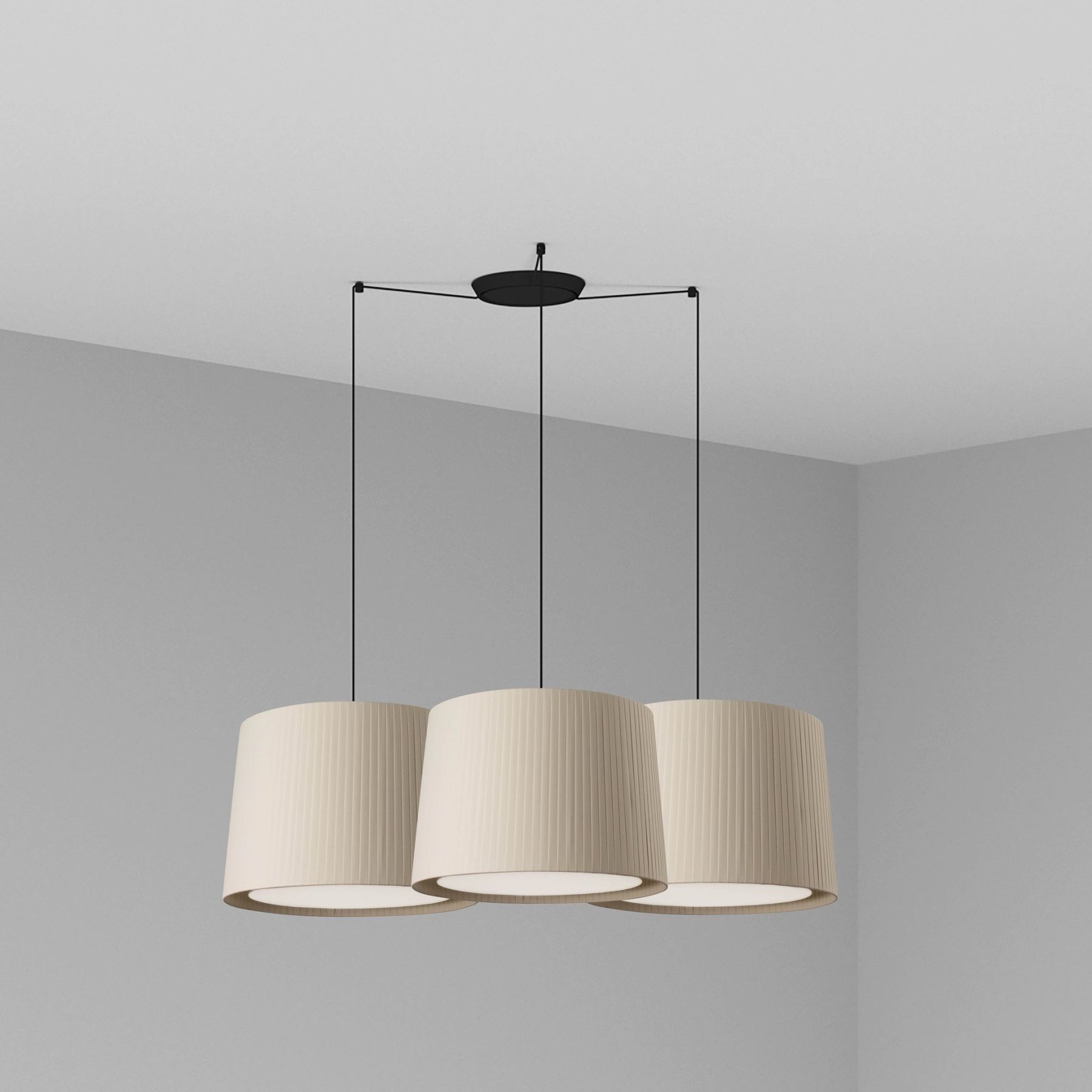 Версия с многослойным 3-световым фонарем. SAMBA — это коллекция ламп для внутреннего освещения, разработанная Faro Lab. Этот черный подвесной светильник с бежевым текстильным абажуром предназначен для освещения спален и гостиных. Это хороший выбор для отелей.