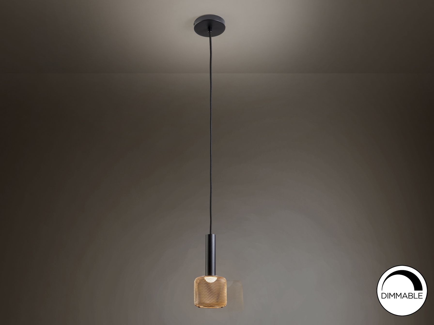 1-ламповый светодиодный светильник из матового черного металла и абажура из металлической блестящей металлической сетки, рассеиватель из опалового акрила. Светодиод 5 Вт, 450 лм, 3000 К. С ЗАТЕМНЕНИЕМ.