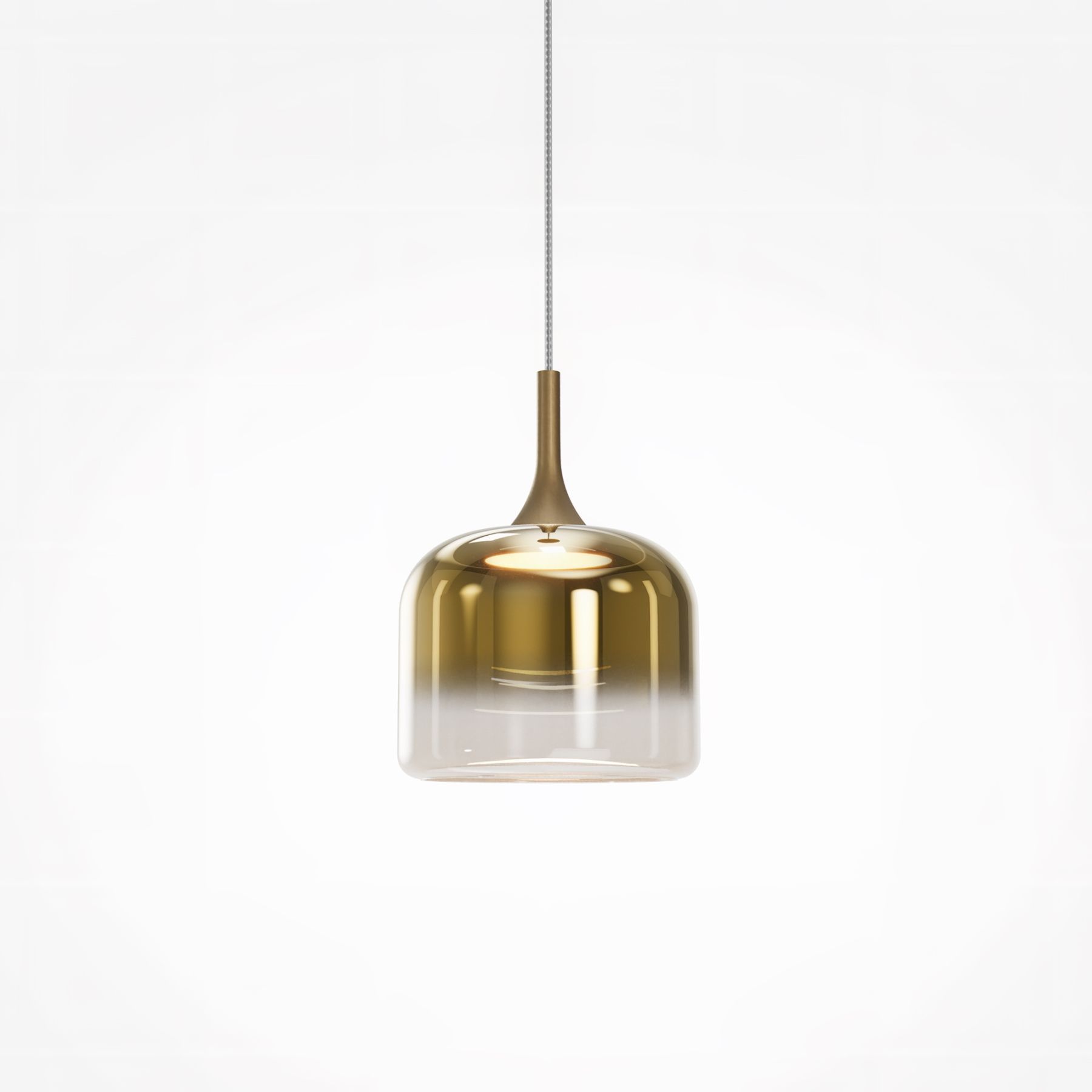 Материал арматуры - металл, плафонов — литое стекло с гальваническим покрытием и эффектом градиента. Три цветовых решения: черное основание и дымчатый абажур, золотое основание и золотой абажур, белое основание и белый абажур. LED-источник света с цветовой температурой 3000К и углом рассеивания 120° обеспечивает комфортное рассеянное освещение. Инновационный тач-сенсор на проводе настольной лампы позволяет диммировать световой поток. Уникальная конструкция создает эффект парения плафона, направляя свет вниз при отражении от стекла. Серия дополнена элегантными подвесами, расширяя возможности дизайна освещения.