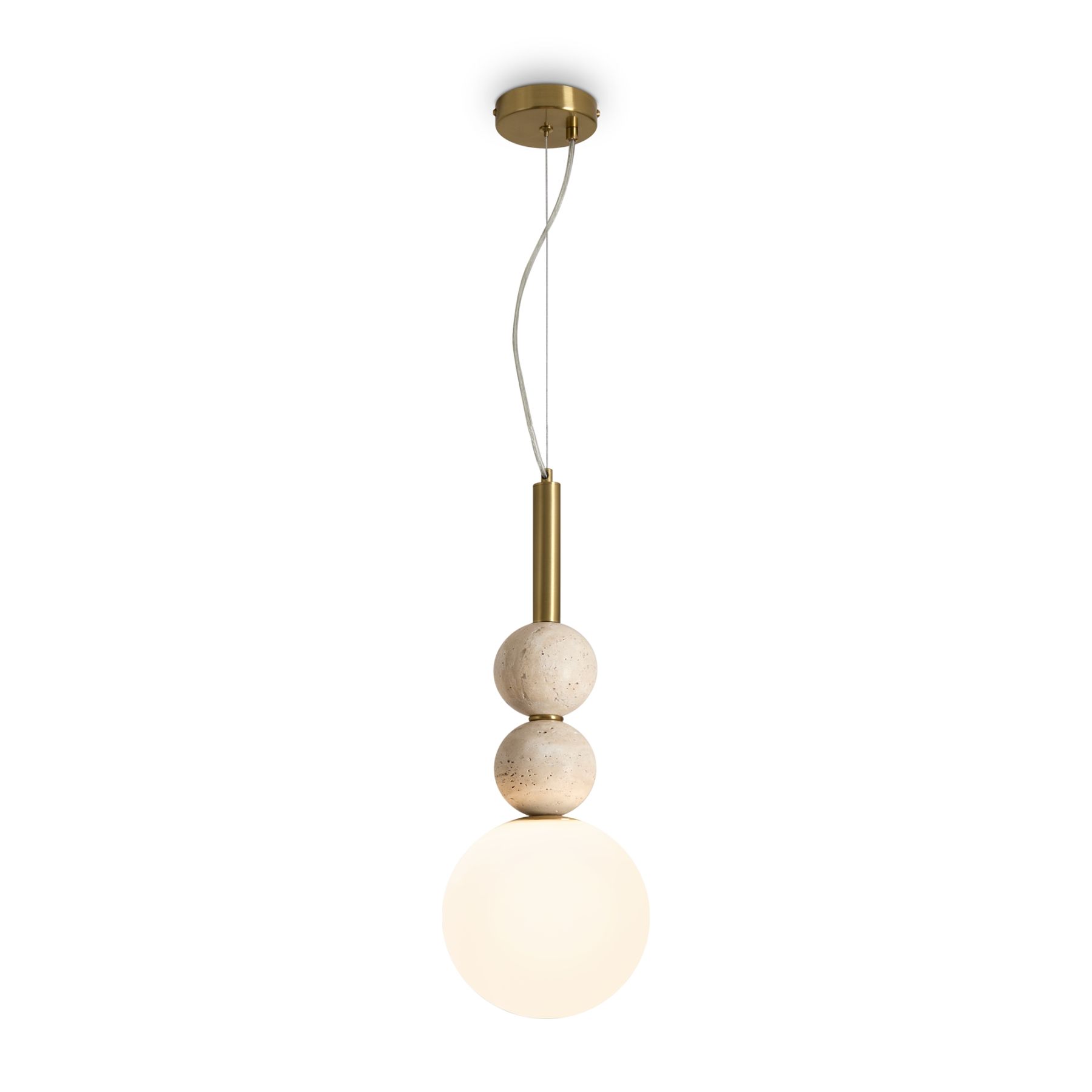 Серия Sunspot использует камень травертин как основной декоративный элемент. Настенные бра в двух вариантах: с матовым белым стеклянным плафоном и со «скользящим» теплым светом. Отличительная черта бра: увеличенный размер плафона и сенсорное включение/выключение без диммирования. Подвесные светильники имеют прозрачные стеклянные плафоны с декоративными шариками из камня травертин. Sunspot включают три модели подвесов разных размеров и форм стеклянной окантовки на плафон. Арматура — металл латунного и черного цвета Источники света LED 3000K и цоколь G9. Настольная лампа с touch переключателем  . Серия создает комплексное зональное и  акцентное освещение, подходящее для создания уютной атмосферы.