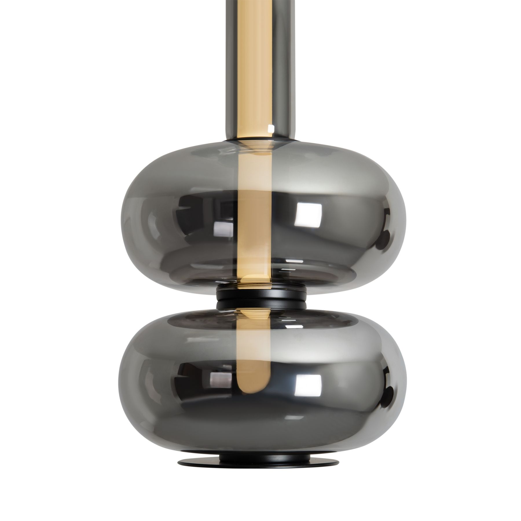 Серия Swim представлена двумя подвесными светильниками разных форм. LED источник света скрыт внутри стеклянного плафона. Арматура -металл чёрного цвета. Плафоны из стекла дымчато-серого цвета с гальваническим покрытием и Led трубкой внутри стекла. Серия раскрывает свой потенциал при комплексной развеске, следуя трендовому направлению в дизайне использовать разные формы. Создает мягкое, атмосферное освещение, подходящее для технологичных интерьеров.