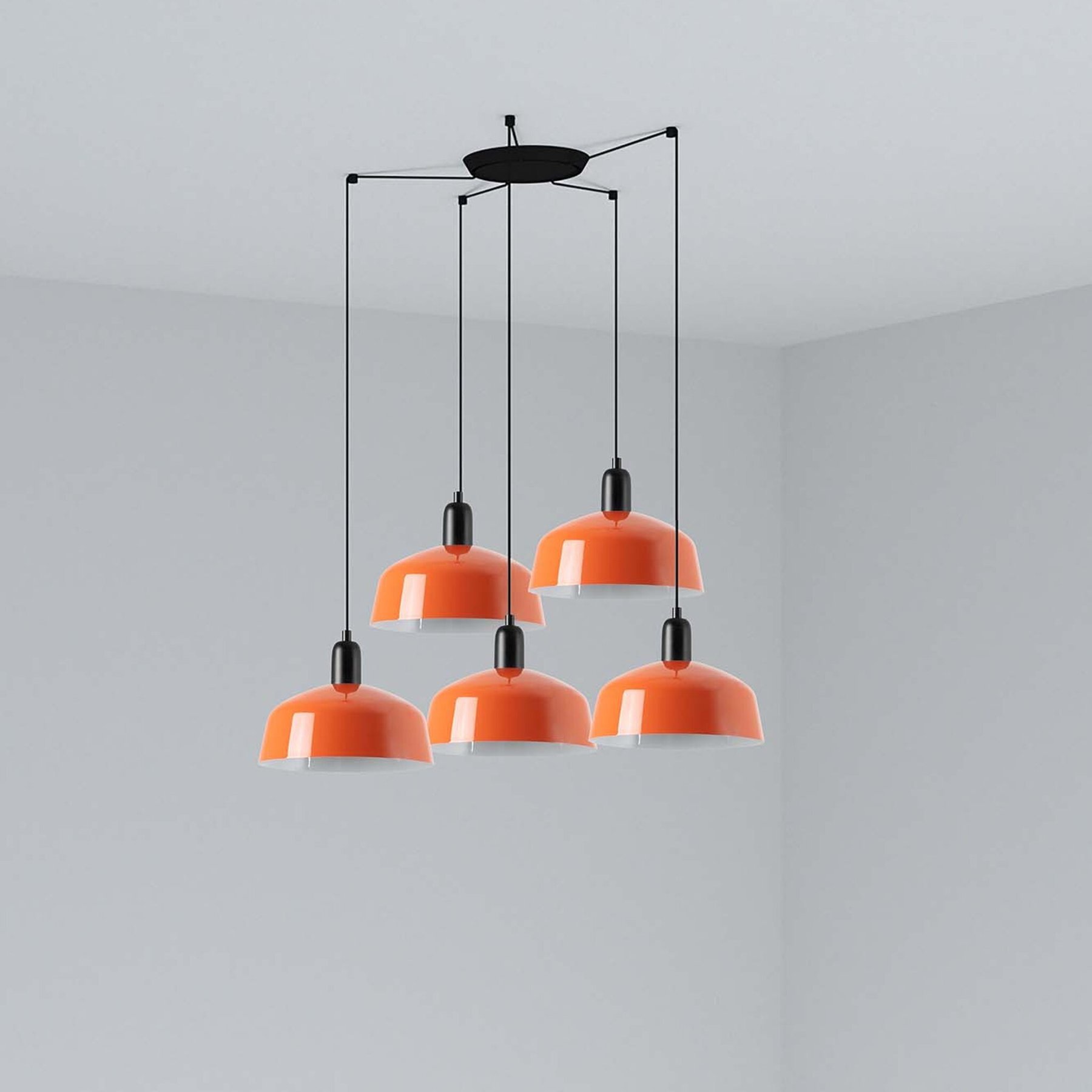 TATAWIN — это серия светильников, разработанная Адольфо Абейоном. Форма абажура напоминает верхнюю часть характерных домов Татауина, города, расположенного на юго-востоке Туниса. Этот подвесной светильник с черной конструкцией имеет красновато-оранжевый металлический абажур, который обеспечивает направленный свет.