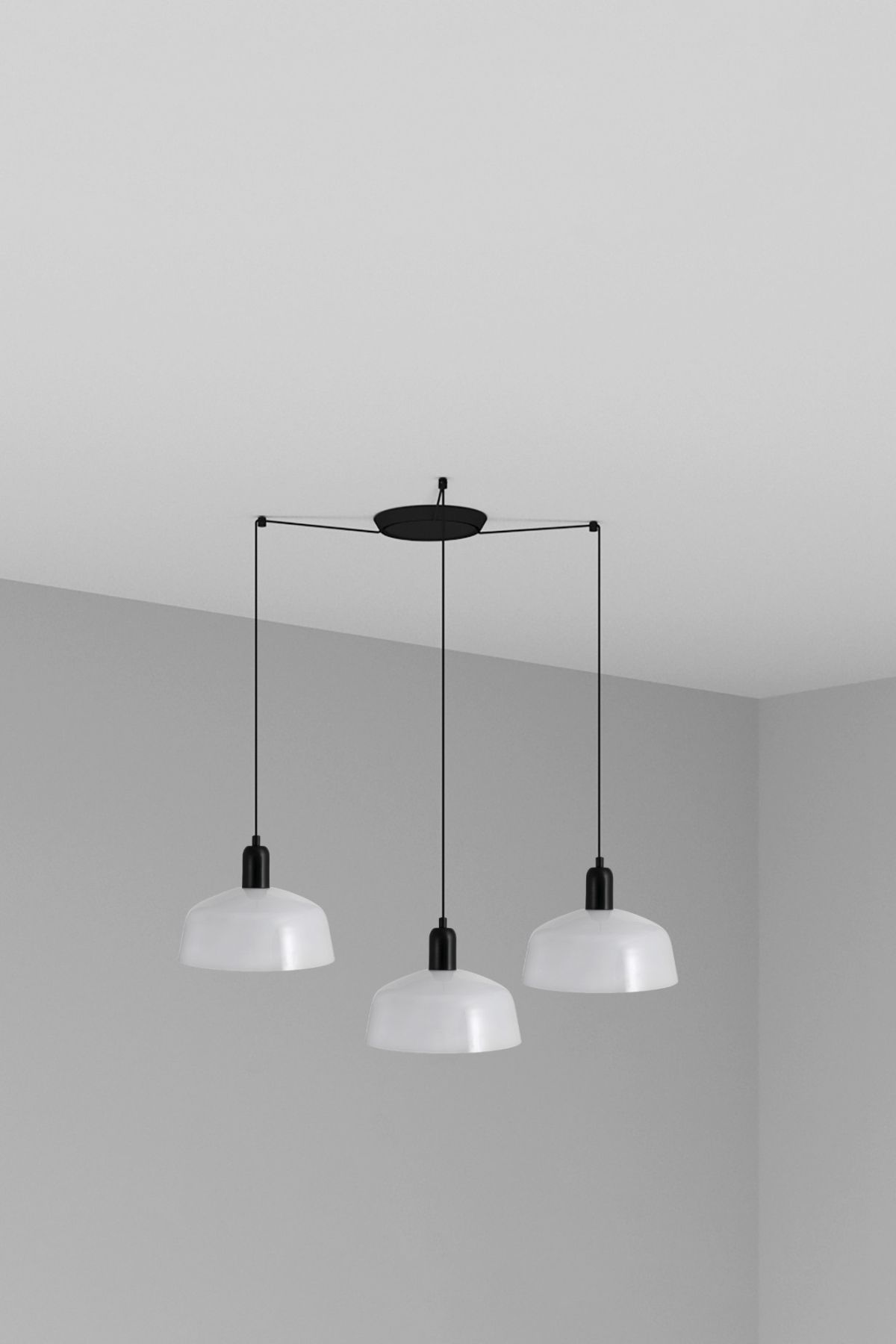 TATAWIN M — это семейство светильников, разработанное Адольфо Абейоном. Форма тени напоминает верхнюю часть характерных домов Татауина, города на юго-востоке Туниса. Он идеален для создания композиций из одной точки света как в контрактных помещениях, так и дома. Версия с абажуром из белого опалового стекла и несколькими потолочными розетками с 3 светильниками.