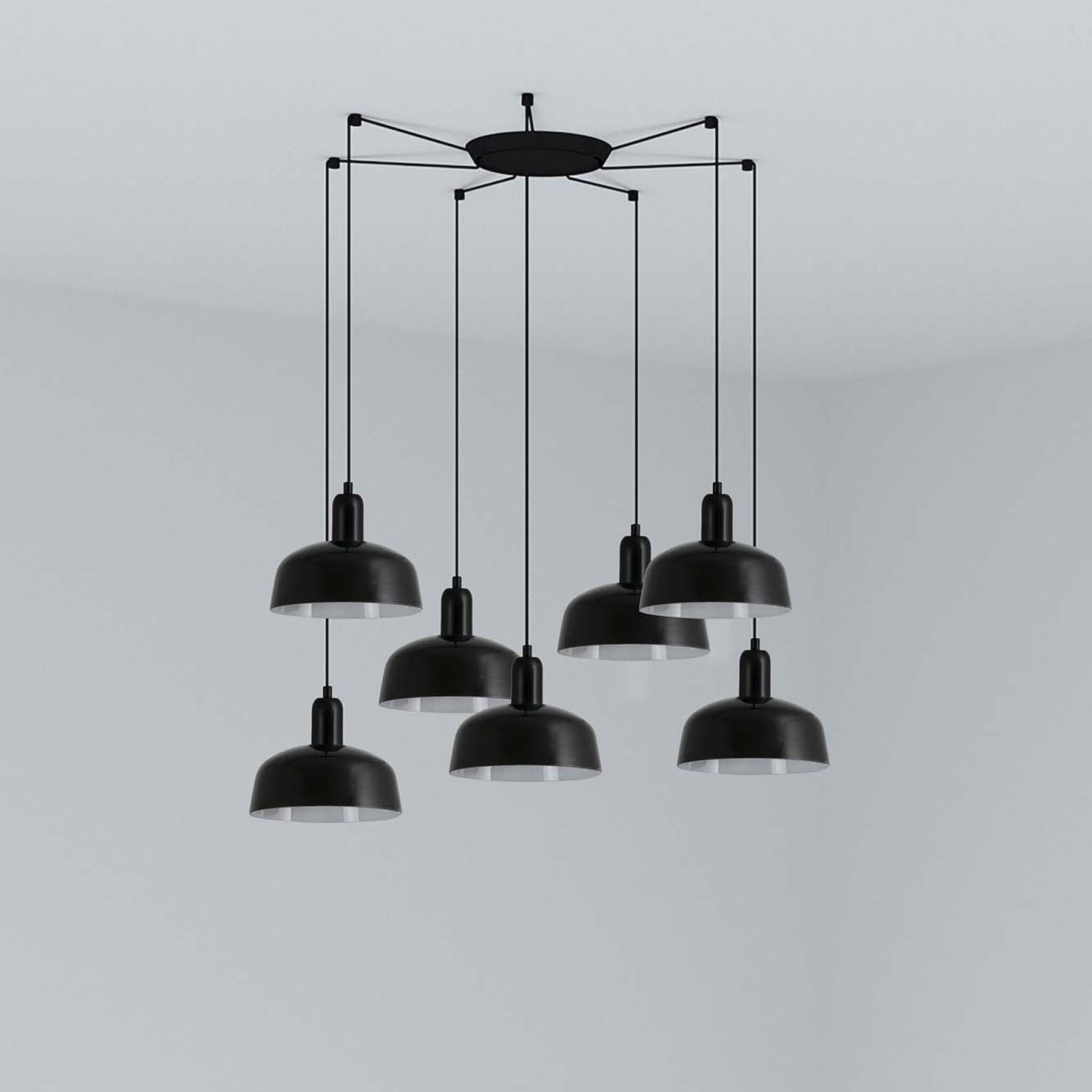 TATAWIN — это серия светильников, разработанная Адольфо Абейоном. Форма абажура напоминает верхнюю часть характерных домов Татауина, города, расположенного на юго-востоке Туниса. Этот подвесной светильник с черной конструкцией состоит из абажура из черного металла, который обеспечивает направленный свет.
