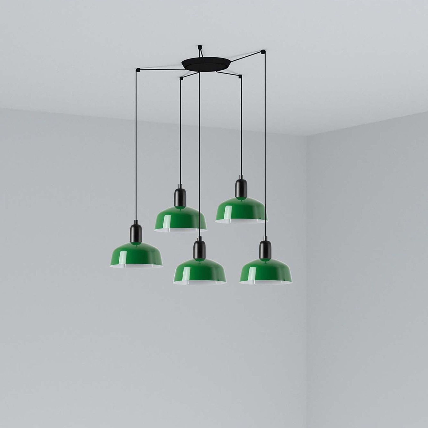 TATAWIN — это серия светильников, разработанная Адольфо Абейоном. Форма абажура напоминает верхнюю часть характерных домов Татауина, города, расположенного на юго-востоке Туниса. Этот подвесной светильник с черной конструкцией состоит из зеленого металлического абажура, который обеспечивает направленный свет.