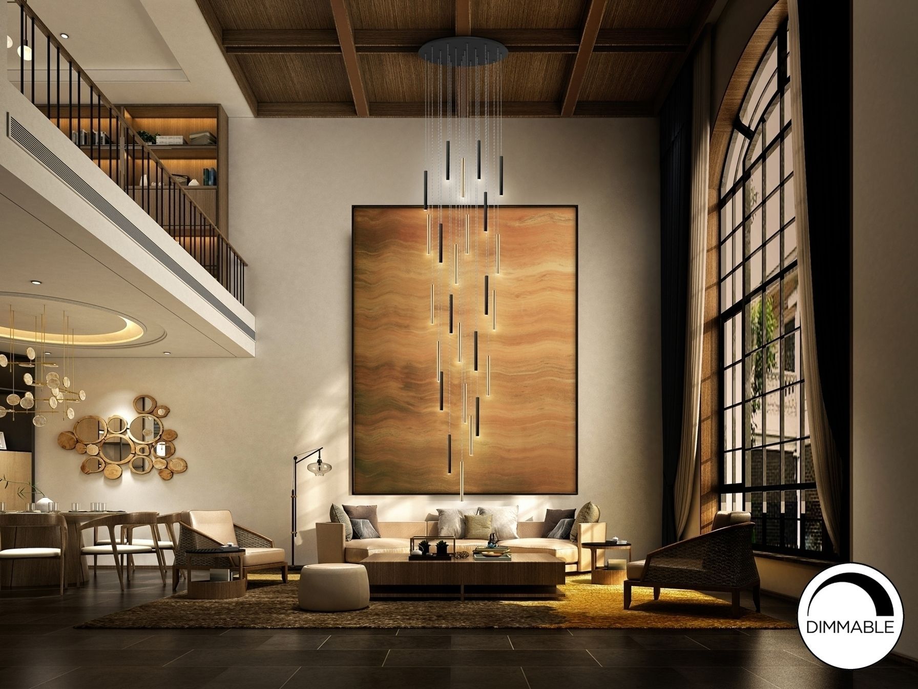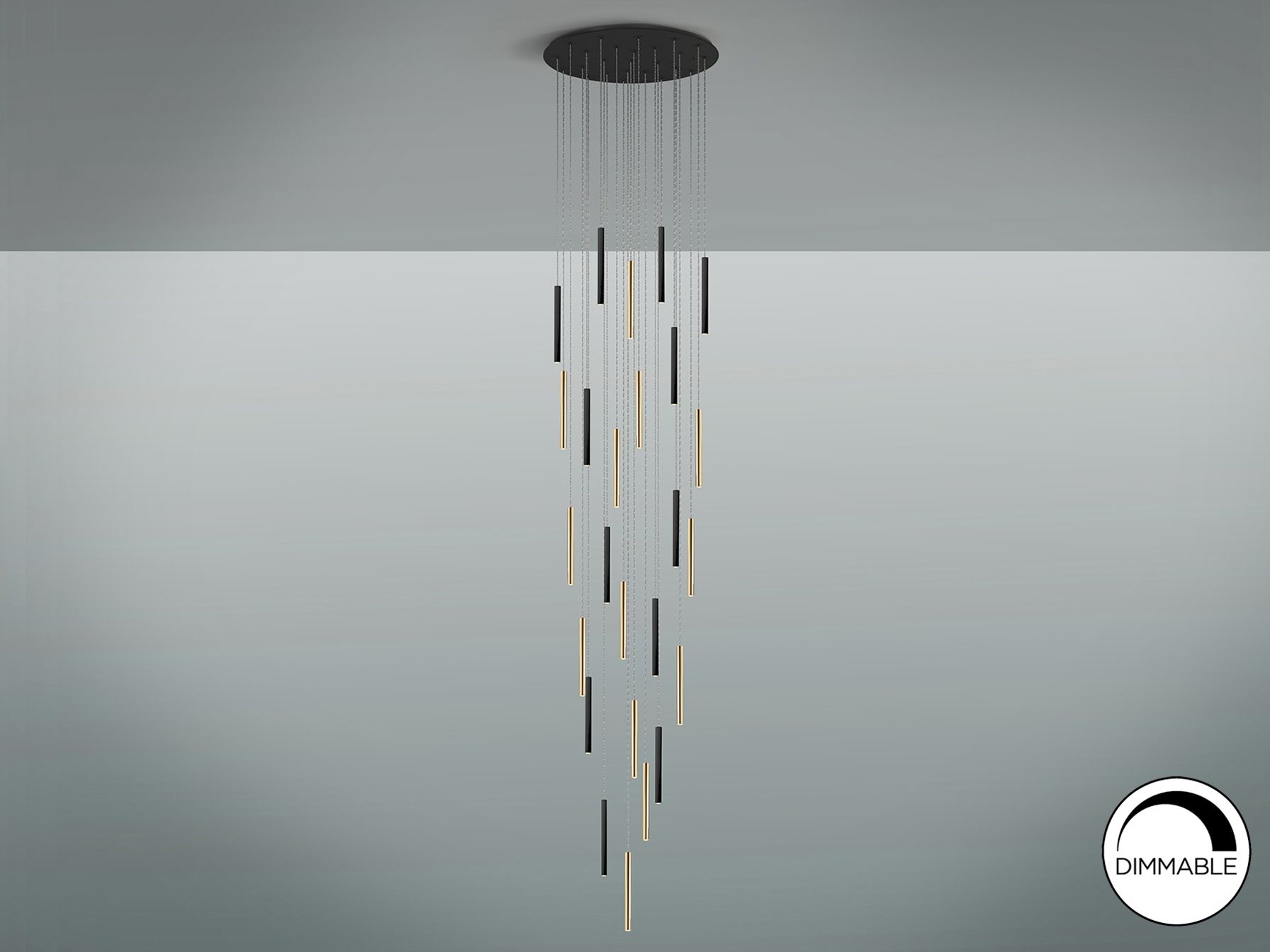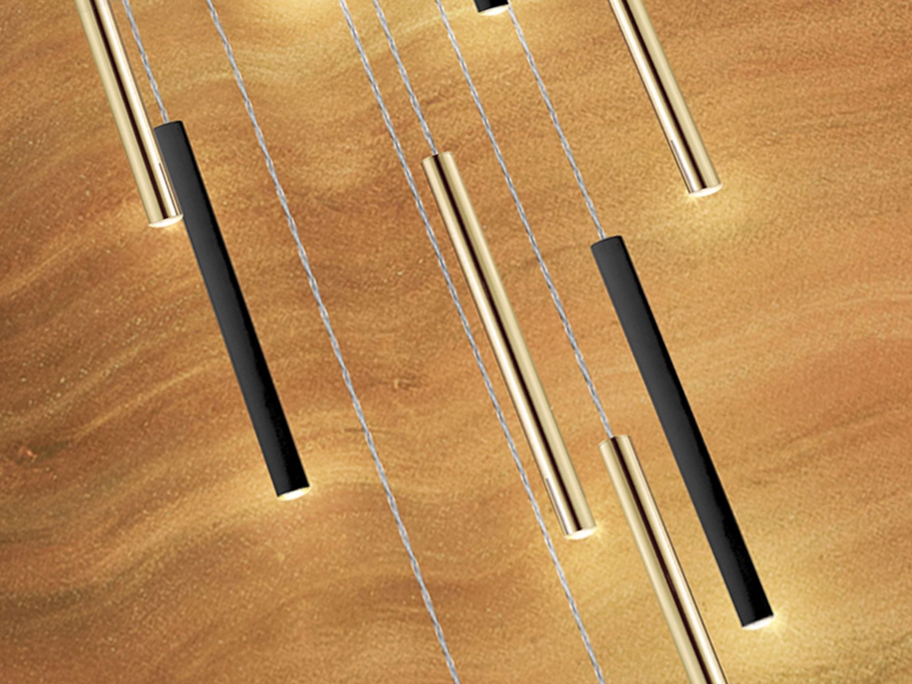Круглый светодиодный светильник на 25 ламп. Изготовлен из металла, покрыт золотом и черным матовым покрытием. Рассеиватель из опалового акрила. 125 Вт светодиод, 11250 лм, 3000 К. Максимальная длина 500 см. DIMMABLE.