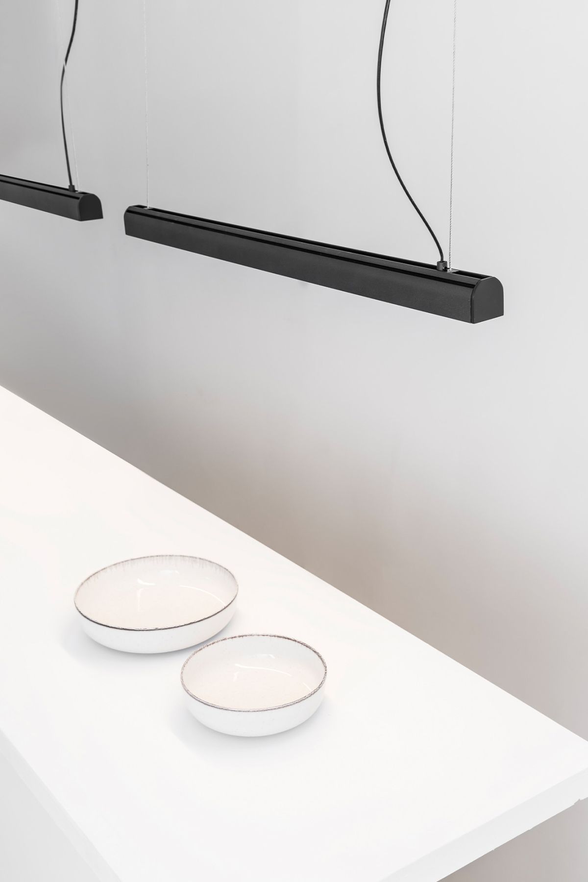 VICO — это черный подвесной светильник в очень современном минималистском стиле. Коллекция позволяет выбирать между двумя вариантами длины и между тем, чтобы оставить потолочную розетку открытой или установить ее в качестве встроенного светильника. Это версия 60 см с розеткой на поверхности. Идеально подходит для всех типов внутренних помещений, таких как столовые.